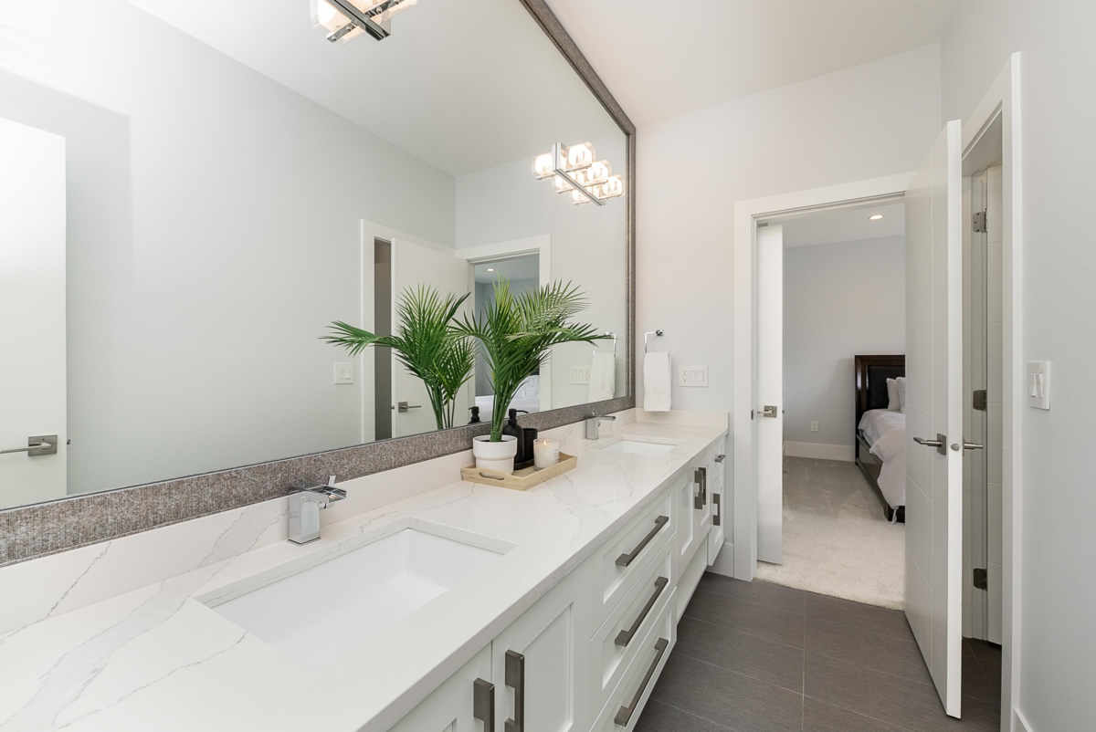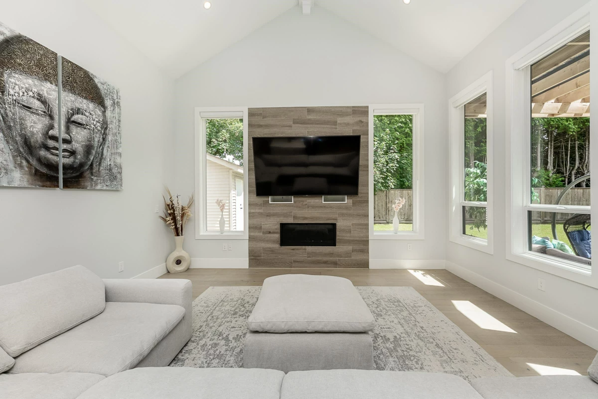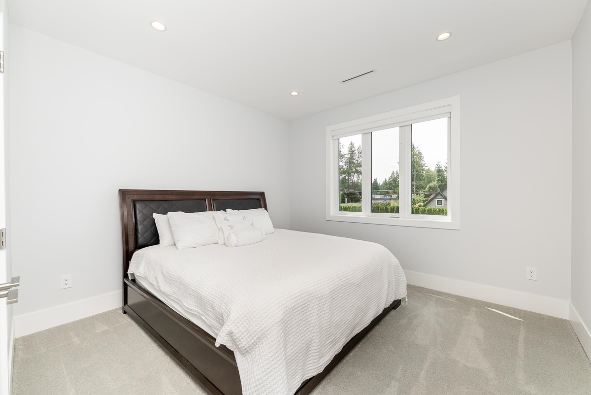 Stunning custom-built home on 1/4 acre corner lot on a no-through road in the highly sought-after Brookswood community just steps from Belmont Elementary, offering a French Immersion program. Built with exceptional quality, this home features a spectacular great room with 20-foot ceilings, a striking double-sided fireplace & an abundance of natural light. Master on main PLUS upper floor, perfect for generational living. Engineered hardwood flooring, quartz countertops with massive waterfall island & a premium JennAir appliance package including a 6-burner gas stove, built-in wall oven & microwave/steamer/fryer combo. Year-round comfort with radiant in-floor heating, A/C & HRV systems. Oversized 3-car garage offers tons of space, plus RV/boat parking & a private 1-bedroom LEGAL suite.