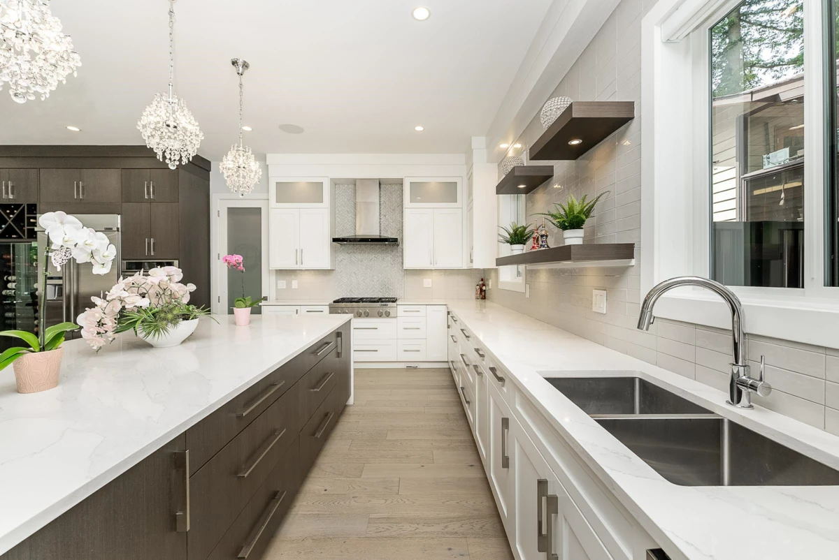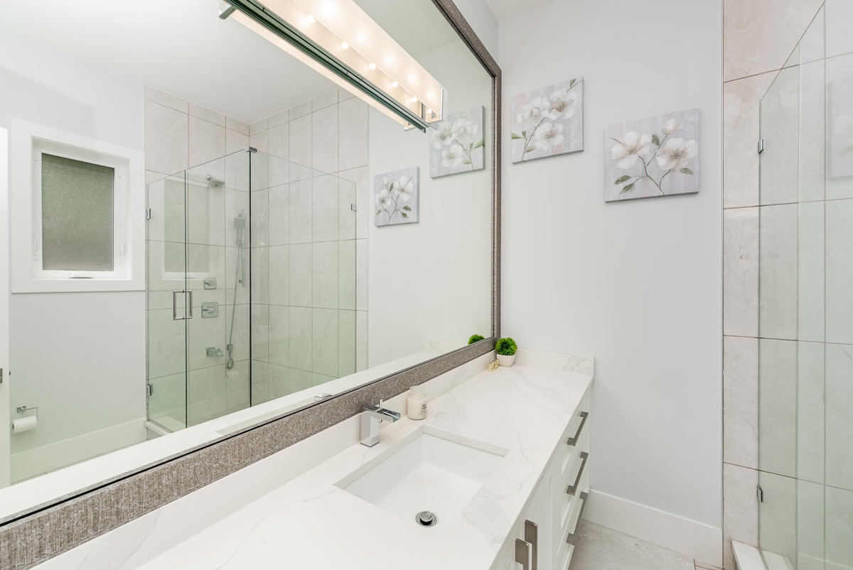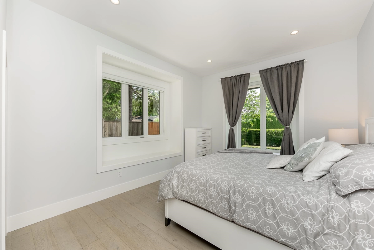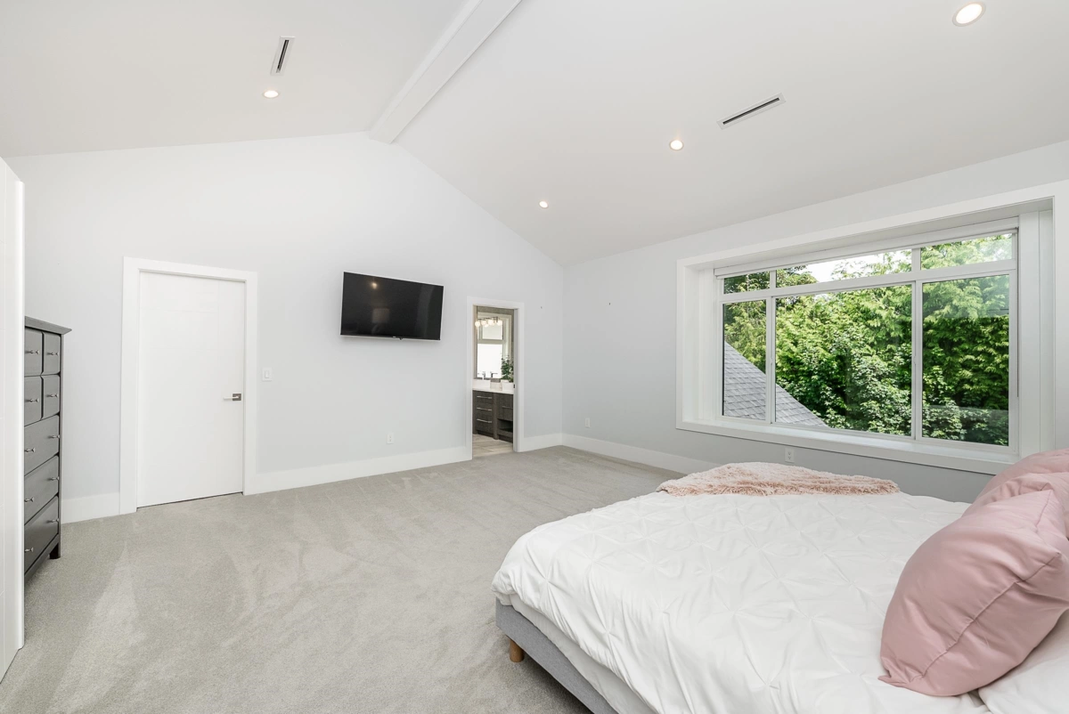 Stunning custom-built home on 1/4 acre corner lot on a no-through road in the highly sought-after Brookswood community just steps from Belmont Elementary, offering a French Immersion program. Built with exceptional quality, this home features a spectacular great room with 20-foot ceilings, a striking double-sided fireplace & an abundance of natural light. Master on main PLUS upper floor, perfect for generational living. Engineered hardwood flooring, quartz countertops with massive waterfall island & a premium JennAir appliance package including a 6-burner gas stove, built-in wall oven & microwave/steamer/fryer combo. Year-round comfort with radiant in-floor heating, A/C & HRV systems. Oversized 3-car garage offers tons of space, plus RV/boat parking & a private 1-bedroom LEGAL suite.