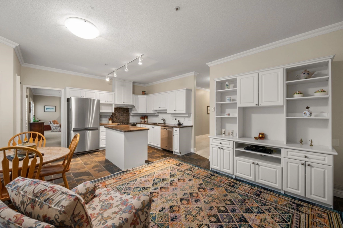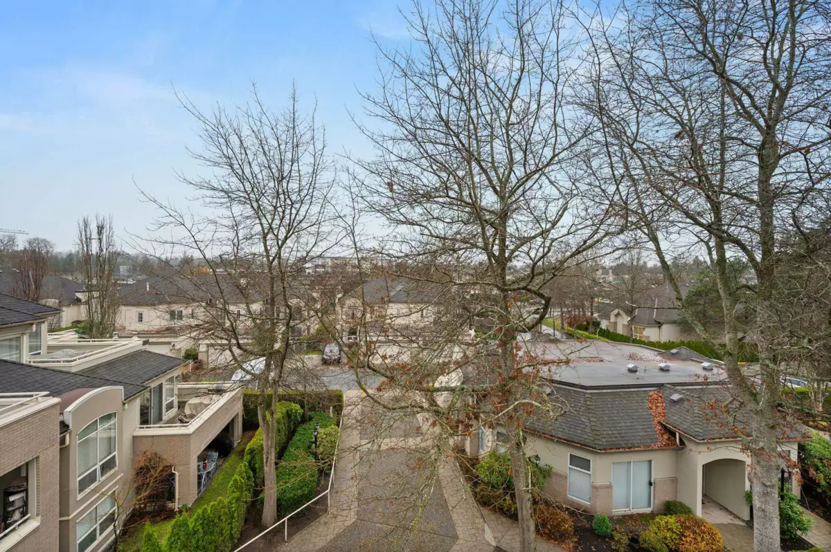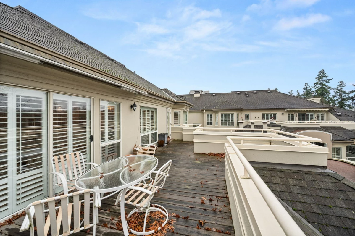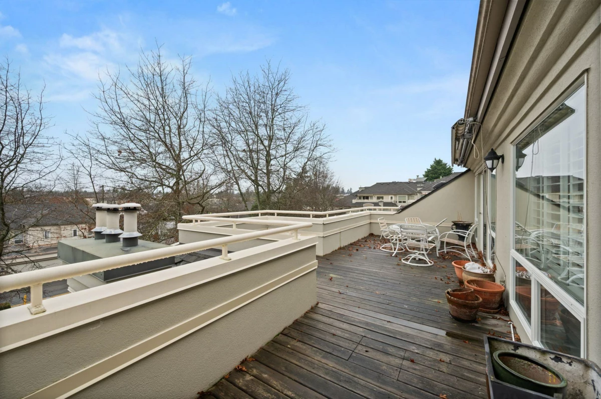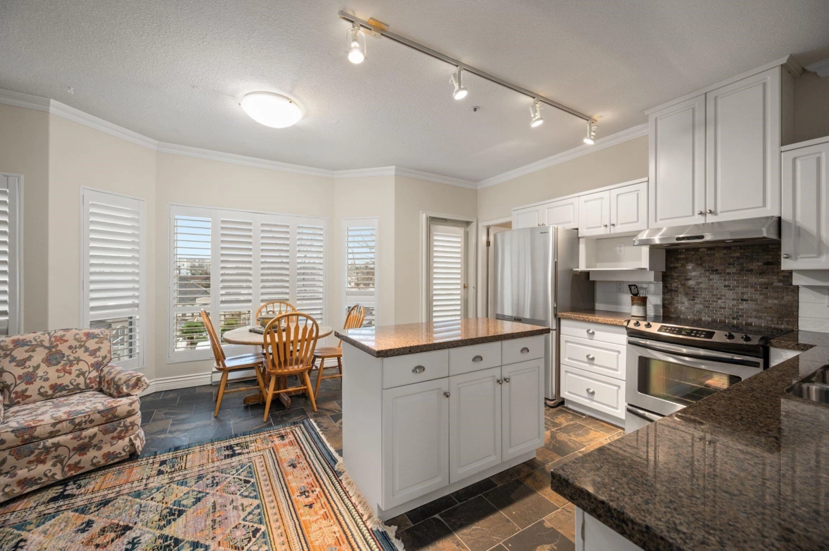 Welcome to Royal Oaks - a "Rancher in the Sky" designed for effortless downsizing and vibrant community living. This 1,678 sq ft penthouse features 2 generous bedrooms plus a den, two balconies with south and west exposure, and a spacious kitchen with island opening to the family room. Plenty of room for entertaining, full dining furniture, and exceptional storage. Well-managed strata, pets welcome. Includes two side-by-side parking stalls (77 & 78) and a large storage locker. Enjoy the central clubhouse and unbeatable location across from Town Centre and restaurant row.