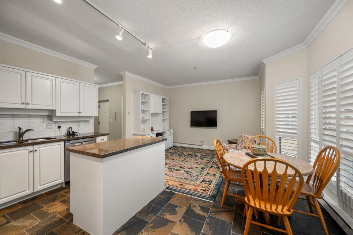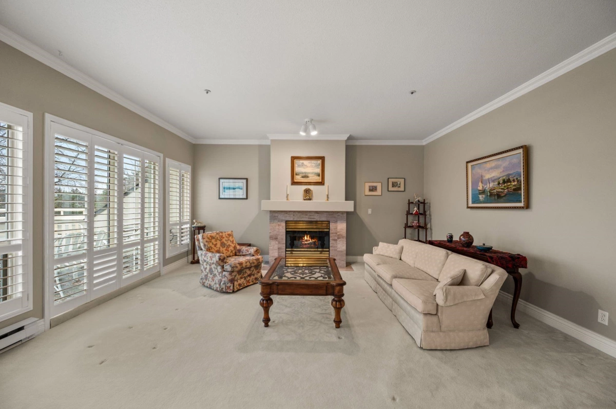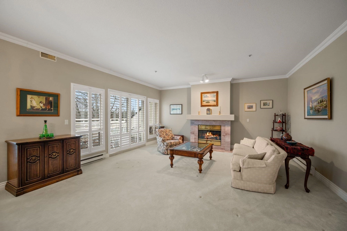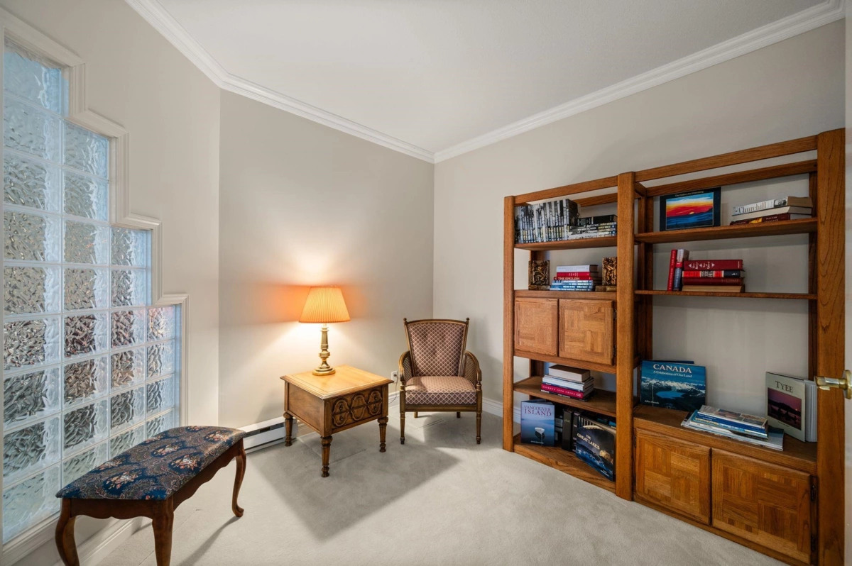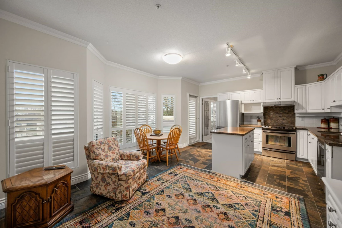Welcome to Royal Oaks - a "Rancher in the Sky" designed for effortless downsizing and vibrant community living. This 1,678 sq ft penthouse features 2 generous bedrooms plus a den, two balconies with south and west exposure, and a spacious kitchen with island opening to the family room. Plenty of room for entertaining, full dining furniture, and exceptional storage. Well-managed strata, pets welcome. Includes two side-by-side parking stalls (77 & 78) and a large storage locker. Enjoy the central clubhouse and unbeatable location across from Town Centre and restaurant row.
