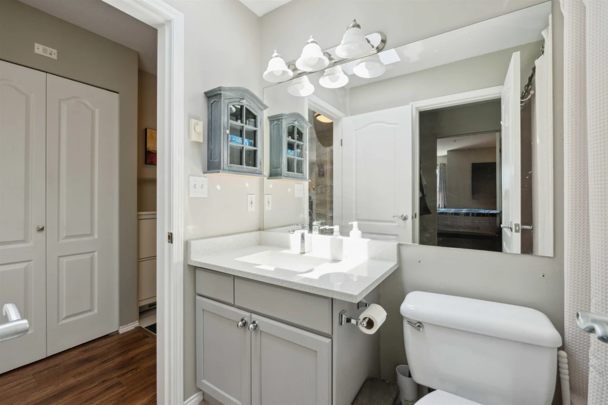 Excellent opportunity for investors or first-time buyers. This extra-large 753 sq ft one-bedroom home offers a functional open-concept layout with generous living and dining areas and access to a spacious balcony with an open outlook. The oversized primary bedroom easily accommodates a king-size bed plus a work-from-home area and features a walk-in closet and ensuite bathroom with dual hallway access, ideal for guests or shared use. A skylight provides added natural light throughout the home. Bright, open kitchen with an efficient layout. Large in-suite laundry and dedicated storage room. Well-managed and updated building offering strong long-term value. Centrally located with all of life’s amenities just steps away, providing solid rental potential and a competitive price point.