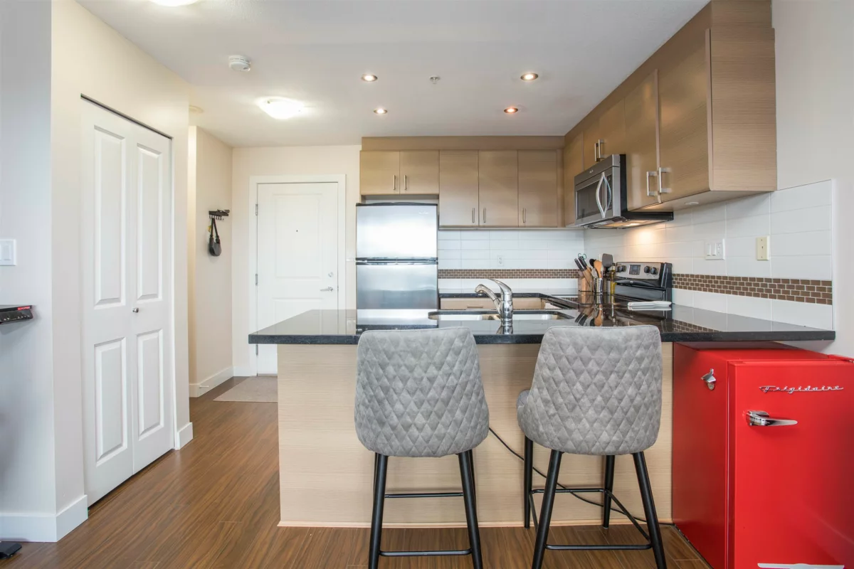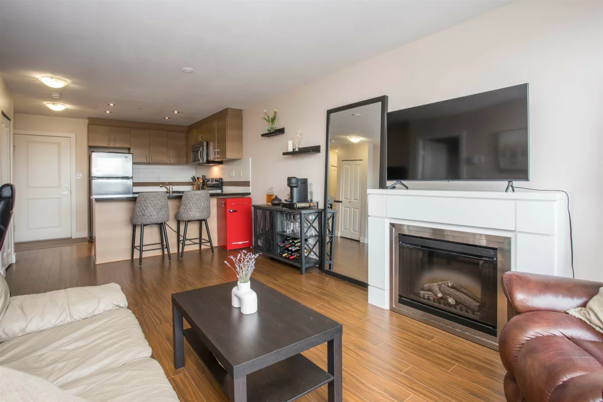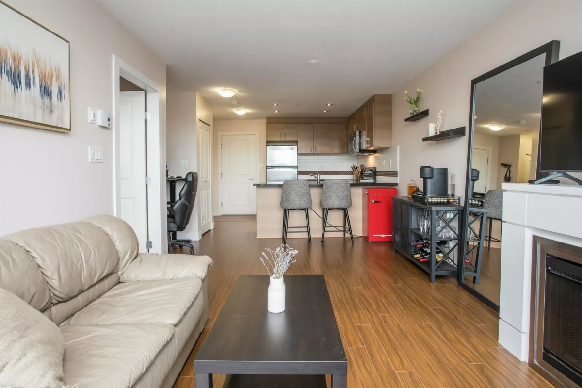 SOLARIS- Pitt Meadows only concrete and steel building! This bright East facing 1 bedroom 1 bathroom home boasts an open and bright floor plan with floor to ceiling windows for tons of natural light. Fresh paint throughout and updated carpets. The kitchen offers a light colour scheme, granite counters and stainless steel appliances. Dining room has an area for a small table and nook for a office or coffee bar. Cozy living room with an electric fireplace and access to your balcony. Steps to the recreation centre, transit stops including the West Coast Express, schools, shopping, library and coffee shops/eateries. Rentals allowed, no pets, 1 parking stall and a storage locker. Pitt Meadows best location for all required amenities! Call today!