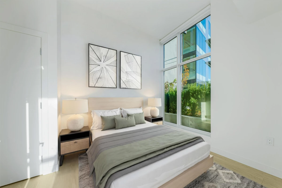 Step into Surrey’s future with this brand new 2-bed, 2-bath corner unit in the vibrant Flamingo master-planned community. Offering 762 sq/ft of efficient living, this home features modern finishes, 10-ft ceilings, floor-to-ceiling windows that flood the space with natural light, wide-plank flooring, and air conditioning throughout. Enjoy a smart layout with premium integrated appliances, 1 secure parking stall pre-wired for EV charging, and a storage locker. Loaded with amenities like community garden, gym and theatre room. Located just steps from Surrey City Centre, Gateway SkyTrain, and the upcoming UBC Surrey campus. Transit, shopping, dining, and entertainment are all within minutes — the perfect blend of convenience and lifestyle. GST paid!