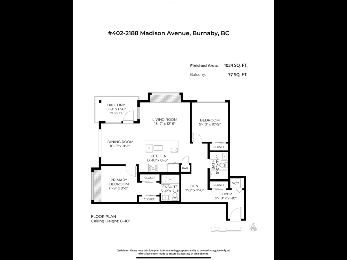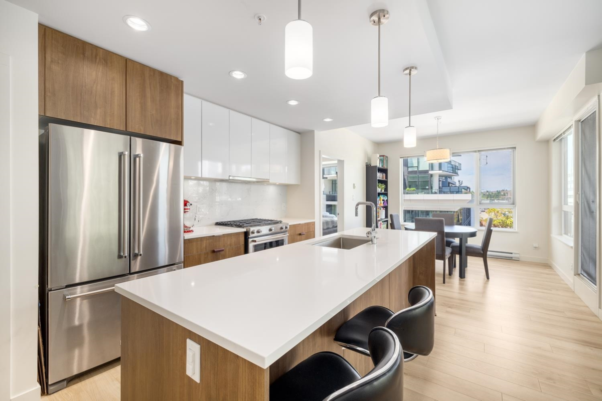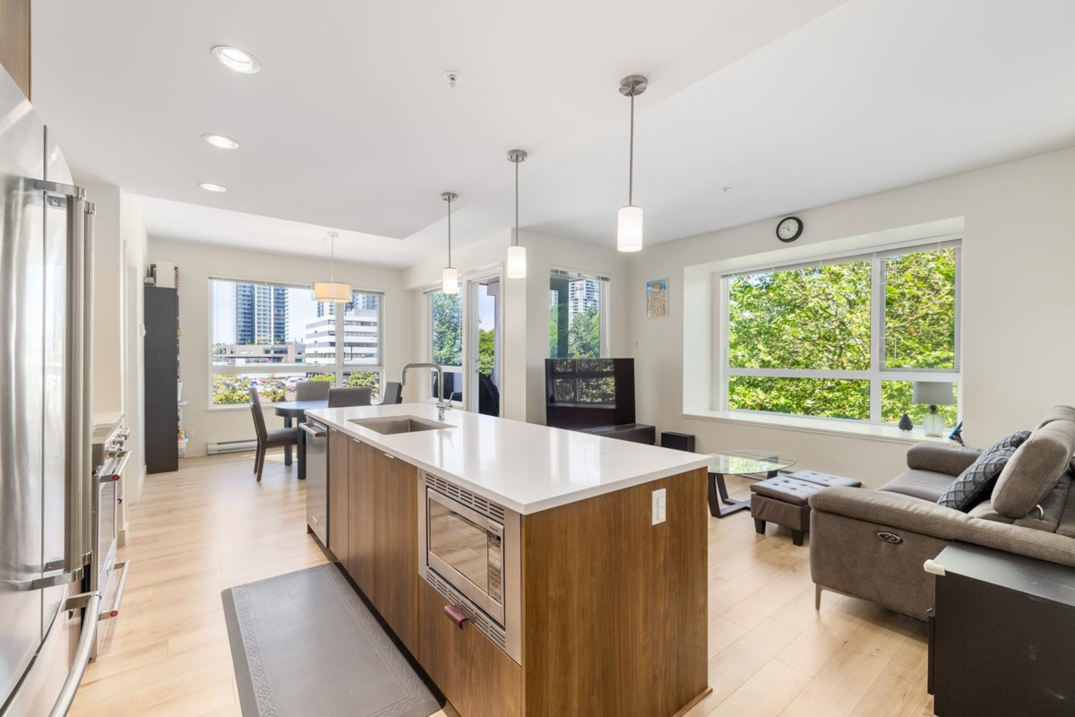 Welcome to Madison & Dawson in prestigious Brentwood District. This expansive 2-bed & 2-bath Northwest corner suite offers 1024 sq ft of exceptional design and functionality. The large living and dining rooms center around a gourmet kitchen with a large island, quartz countertops, gas stove, and stainless steel appliances. The built-in desk work space is tucked away to create a quiet area to study and catch up on emails. Retreat to the oversized covered deck for BBQs and gatherings. Comes with 2 side-by-side parking & 1 locker. Terrace garden, social lounge, fitness center, and guest suite are among the amenities. Explore trendy boutiques, dining, and entertainment venues nearby.