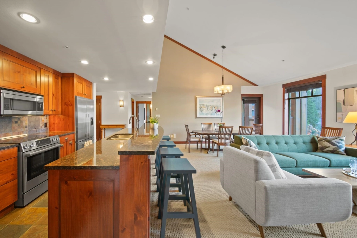 Steps from the Creekside Gondola, this top-floor west facing residence in First Tracks Lodge has it all. Vaulted ceilings, mountain views, and abundant light create a warm yet elegant alpine atmosphere. Enjoy apres-ski drinks, sunsets and moonsets over Sproatt Mountain from the spacious deck. This sought after layout offers three vaulted-ceiling bedrooms and three bathrooms, perfect for family and friends to gather and unwind. Beautifully maintained and lightly updated, it retains timeless design details. Exclusive amenities include a year-round pool, two hot tubs, steam room, and fitness centre. With two secure parking stalls, a large ski locker, and easy access to Creekside’s shops, lakes, and trails, this is your ideal Whistler retreat.