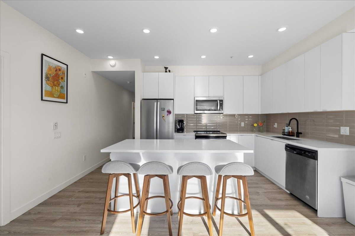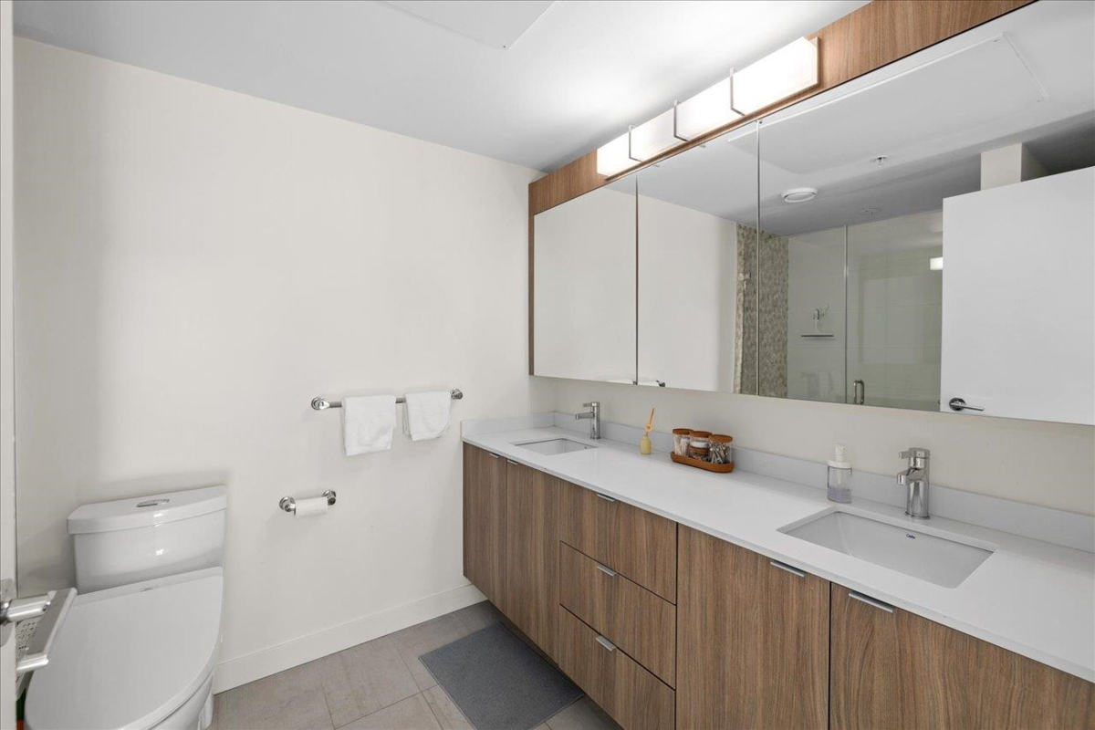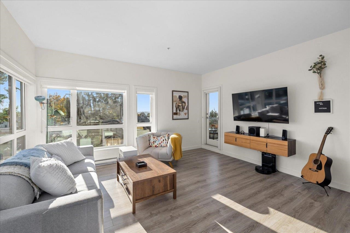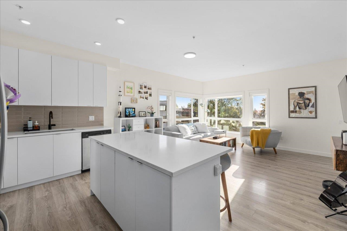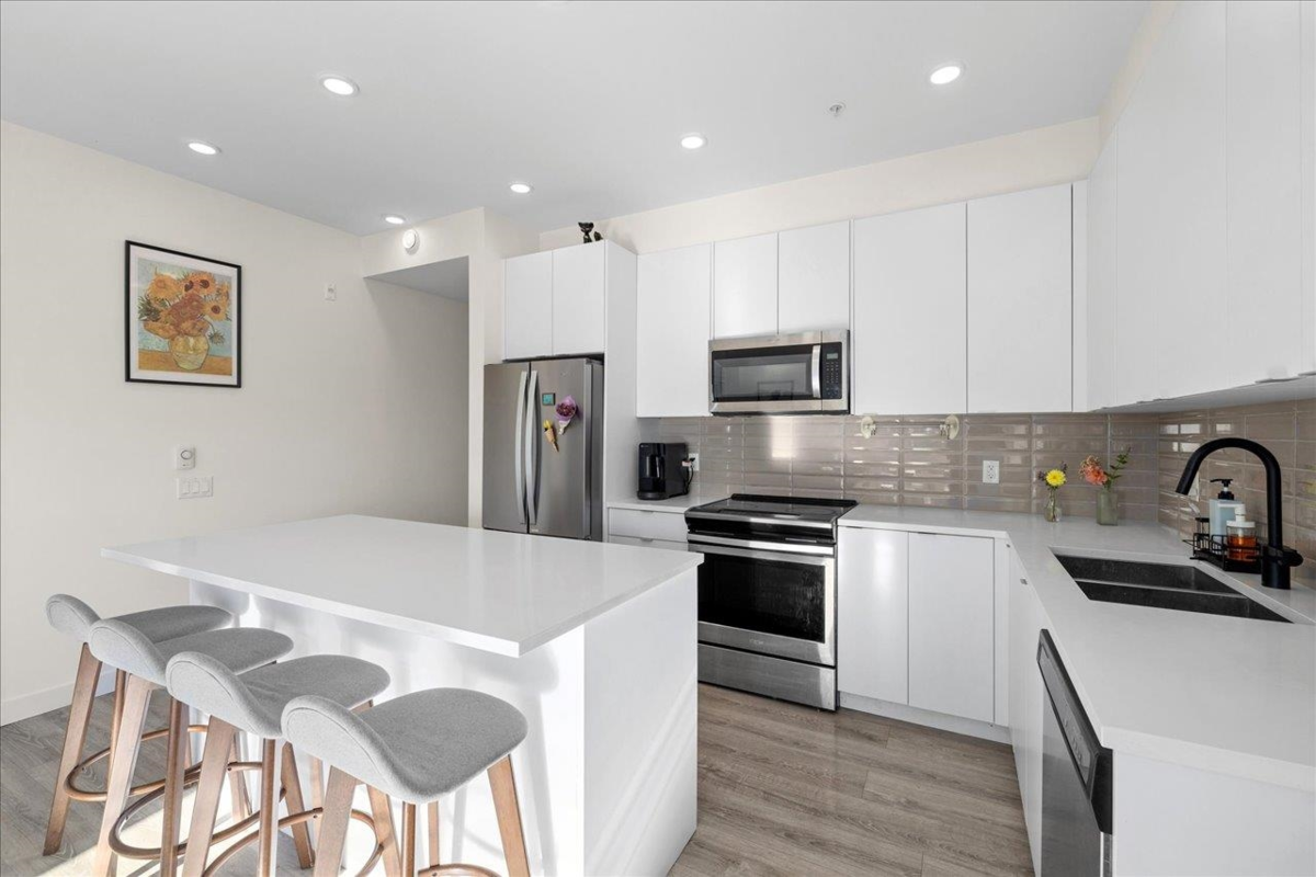 Welcome home to this bright & spacious 3 bed, 2 bath CORNER UNIT in Uptown! Thoughtfully designed floor plan features a chef’s kitchen with quartz counters, S/S appliances & large island flowing into open dining & living areas - perfect for entertaining. High ceilings, oversized windows & abundant natural light throughout. SE PRIVATE EXPOSURE with peek-a-boo water views from your covered balcony. Spacious primary bdrm with walk-through closets & en-suite bath w/ double sinks. 2nd & 3rd bdrms on opposite side for added privacy. Great building with remaining 2-5-10 warranty. Rooftop deck, community garden, 2 pets (no size rest.’s), 1 parking & option for storage locker. Prime location near 6th & 6th, major HWY’s & walkable to parks, sportsplex, shops, dining, schools, transit & skytrain.