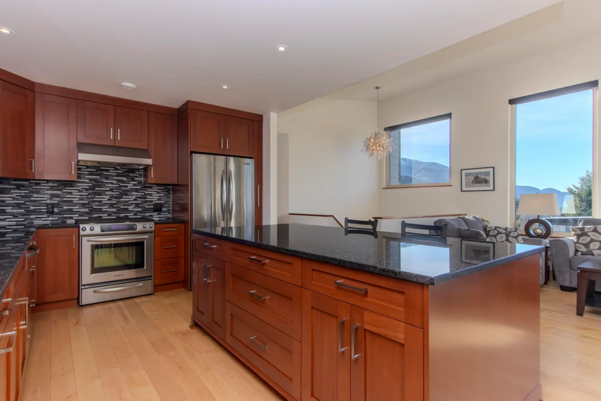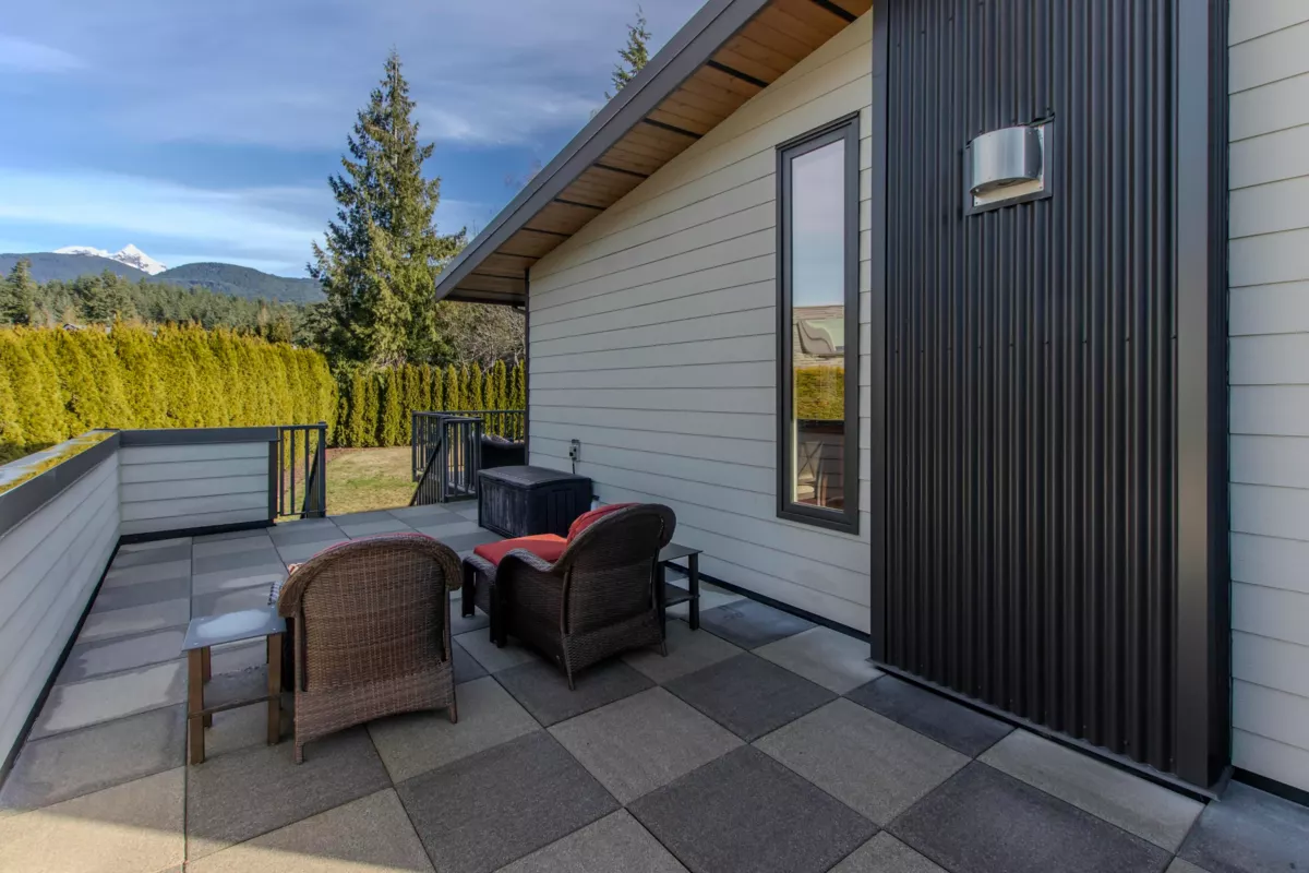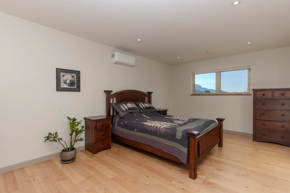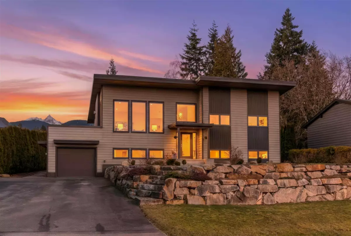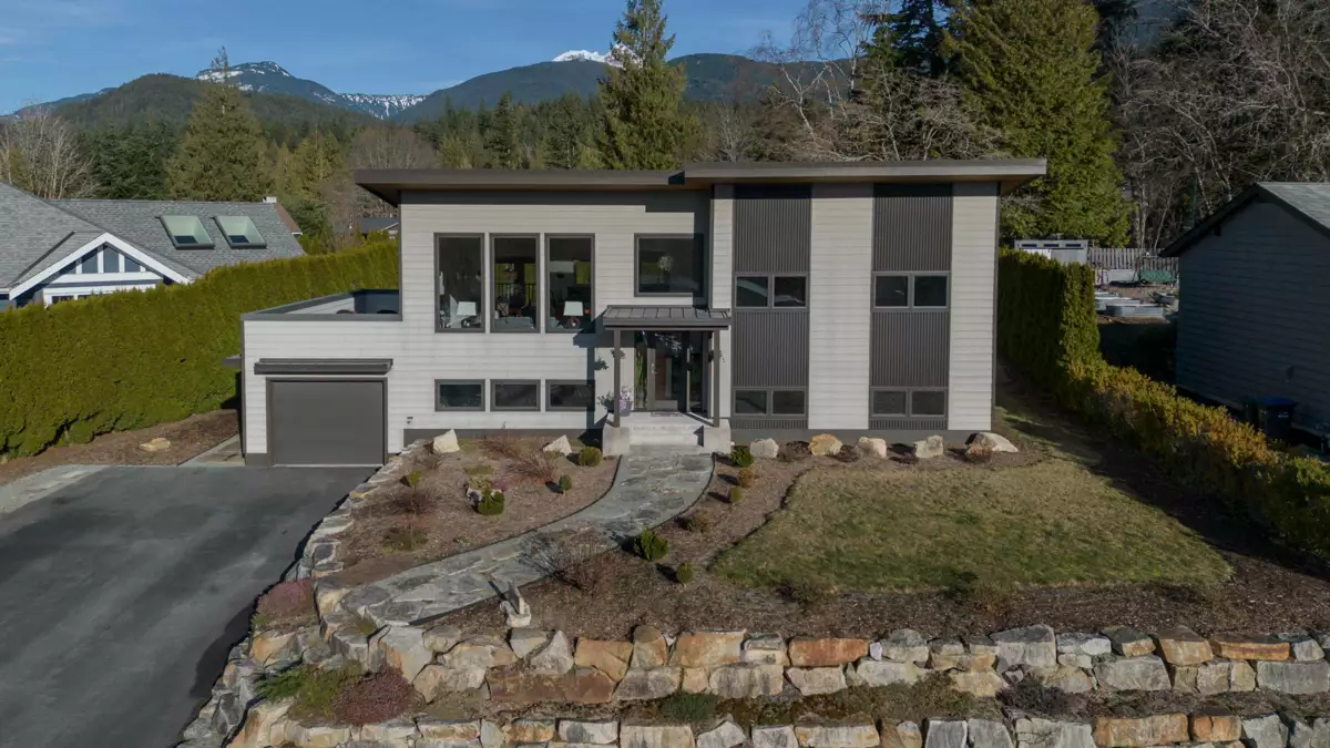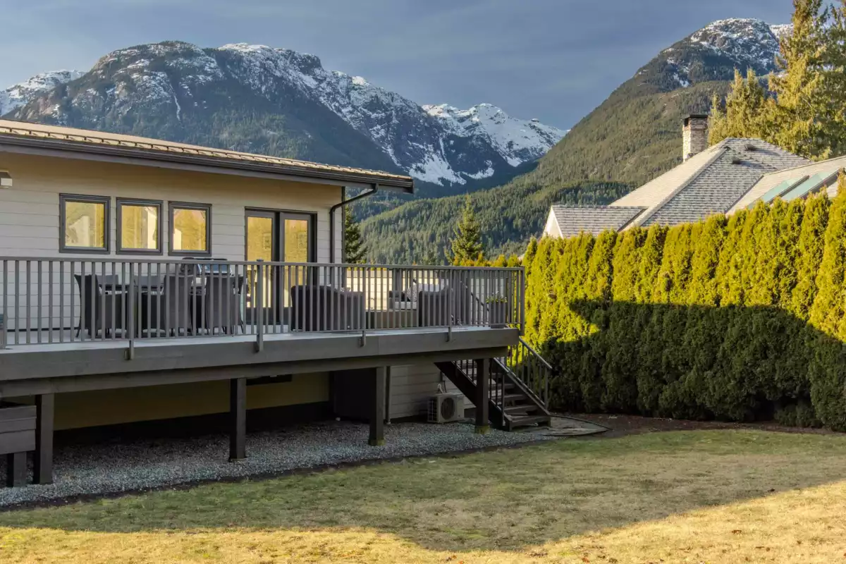 Situated on a large, level lot on one of Squamish's most sought-after streets, this home was completely remodelled in 2014, making it ideal for a mature family. The main level boasts a great room with vaulted ceiling and expansive windows; primary bedroom with ensuite and walk-in closet; 2nd bedroom; powder room; and spacious rear & side decks offering panoramic mountain & water views, natural gas connection, and recessed hot tub. The lower level has two generous bedrooms; large family room; 3-piece bathroom; laundry and utility rooms. Upgrades include all new wiring, plumbing, gas lines, hydronic heating, air conditioning, HRV, spray foam insulation, perimeter drain, rain-screen, engineered hardwood & ceramic tile flooring, and custom cabinets with granite countertops.