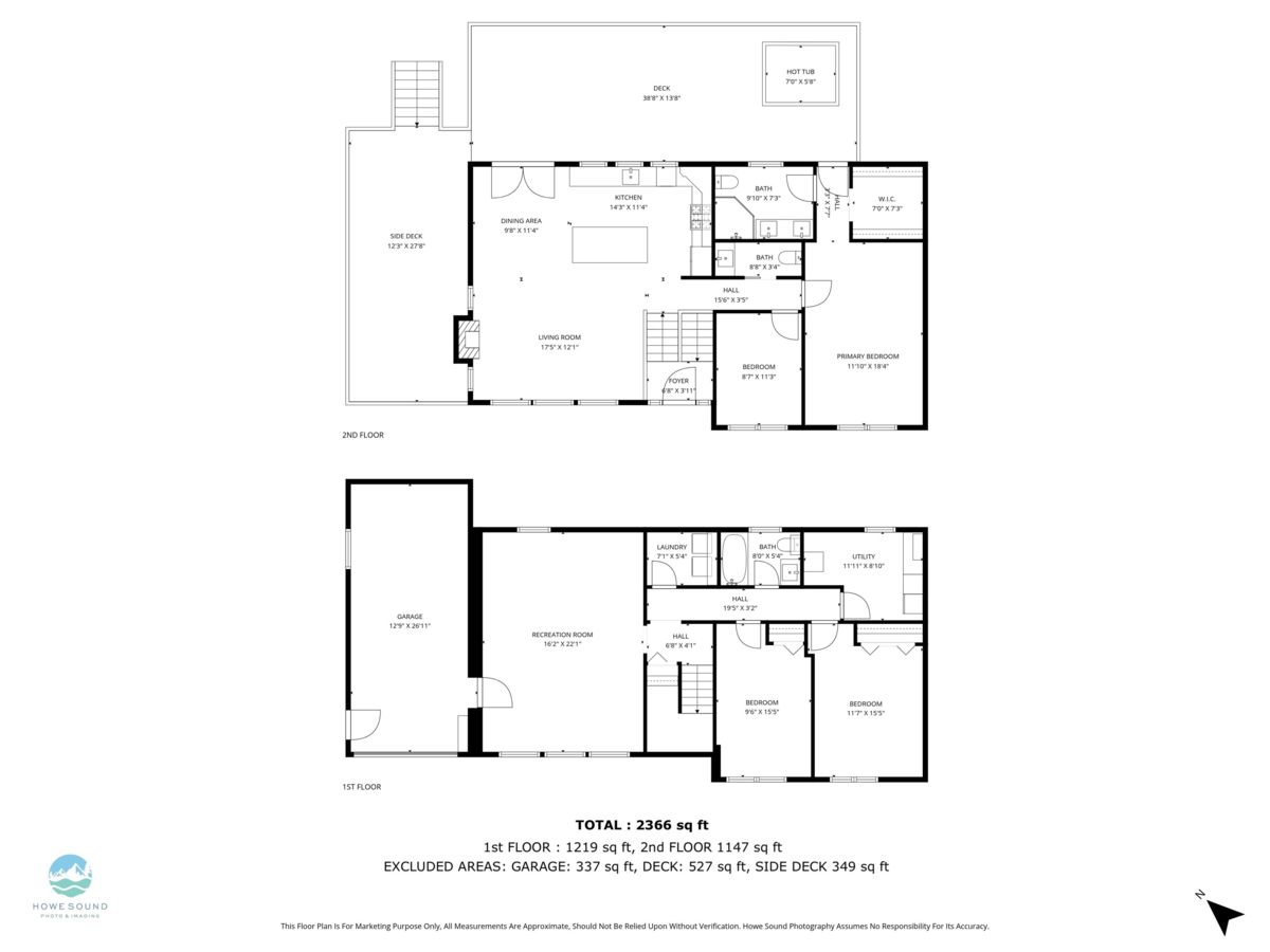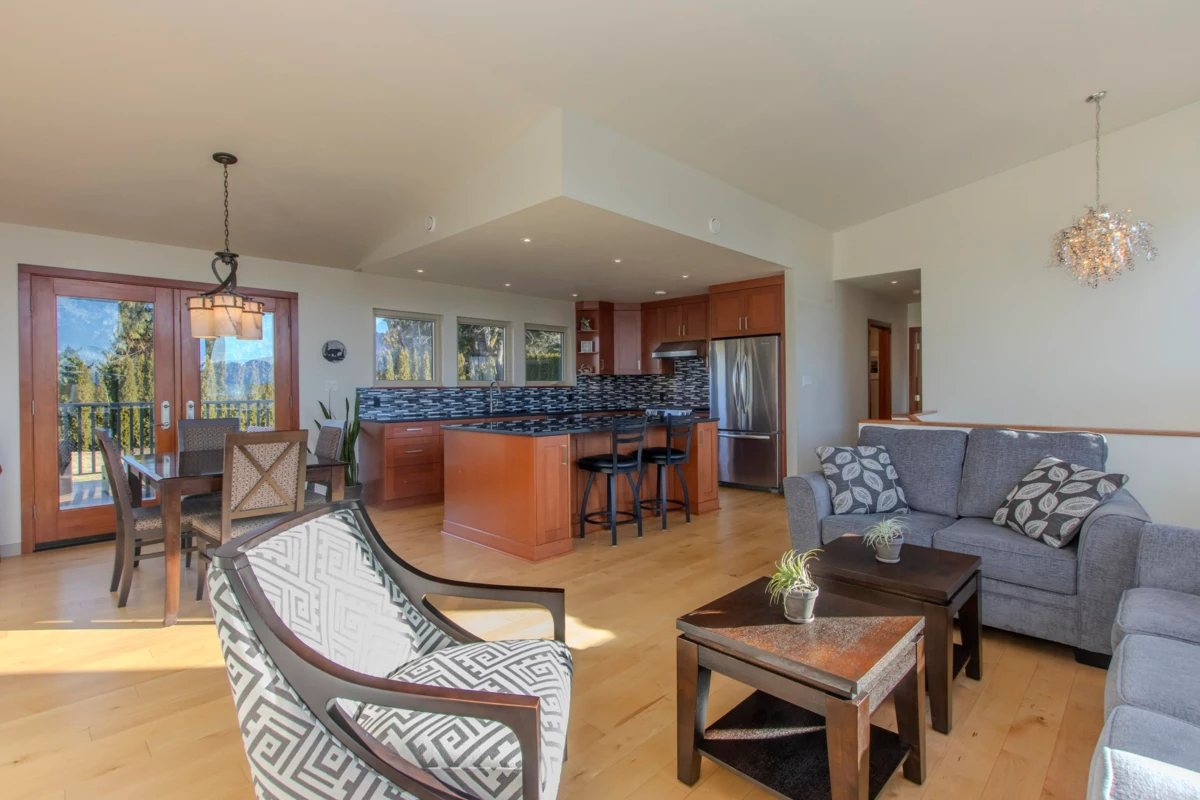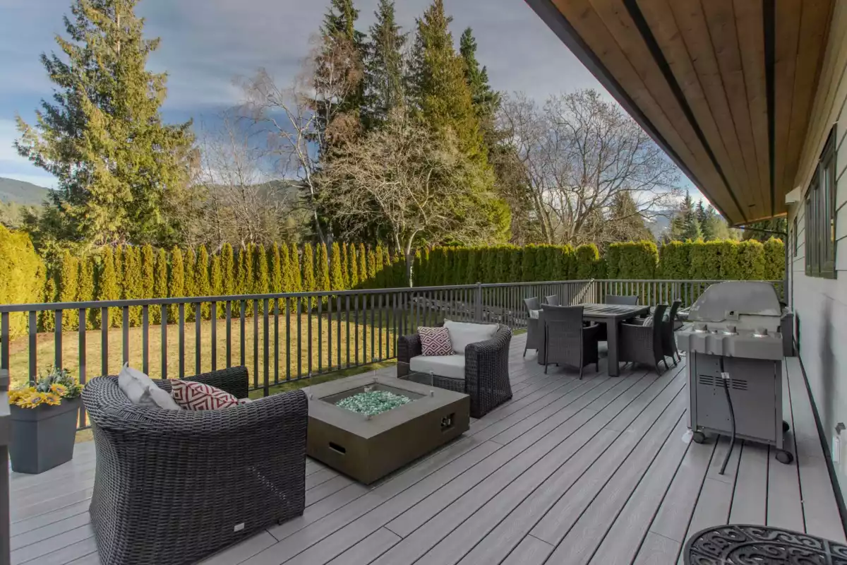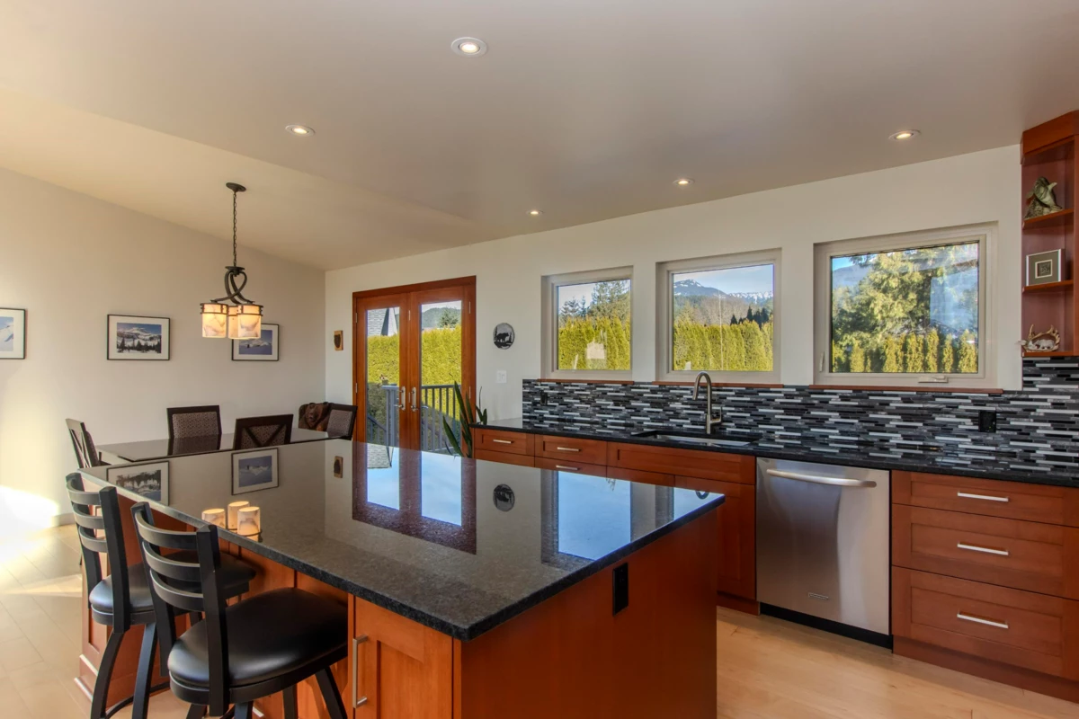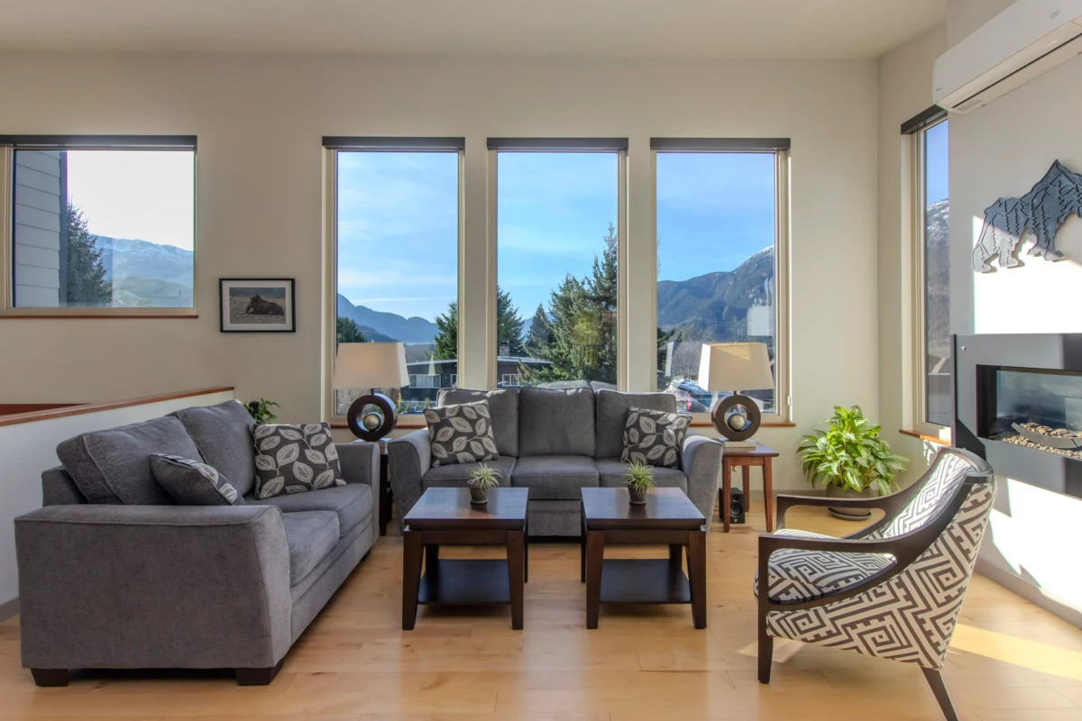 Situated on a large, level lot on one of Squamish's most sought-after streets, this home was completely remodelled in 2014, making it ideal for a mature family. The main level boasts a great room with vaulted ceiling and expansive windows; primary bedroom with ensuite and walk-in closet; 2nd bedroom; powder room; and spacious rear & side decks offering panoramic mountain & water views, natural gas connection, and recessed hot tub. The lower level has two generous bedrooms; large family room; 3-piece bathroom; laundry and utility rooms. Upgrades include all new wiring, plumbing, gas lines, hydronic heating, air conditioning, HRV, spray foam insulation, perimeter drain, rain-screen, engineered hardwood & ceramic tile flooring, and custom cabinets with granite countertops.