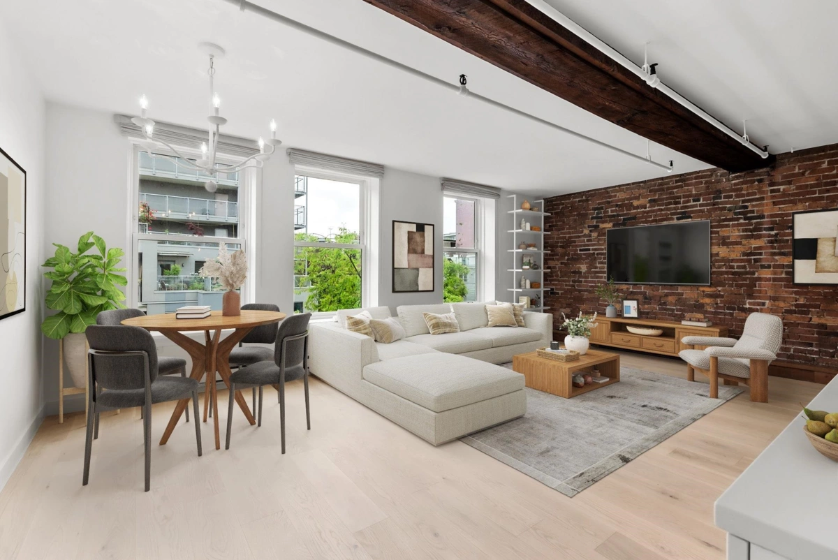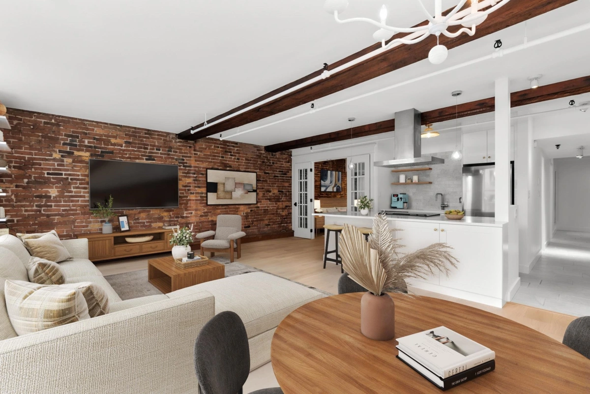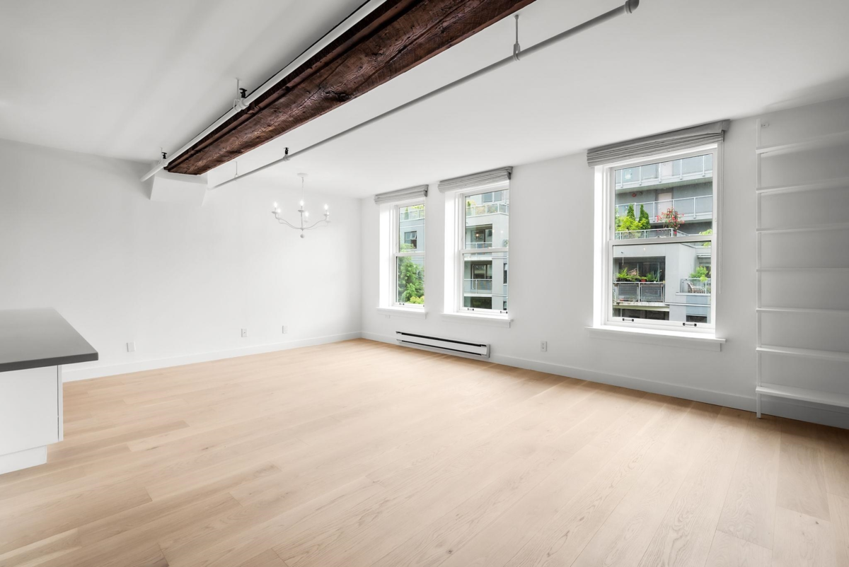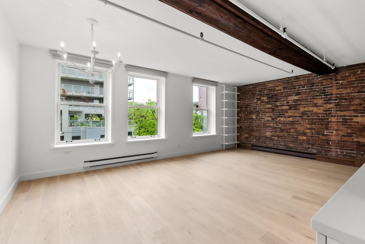 STUNNING HERITAGE LOFT at historic Mission House - FULLY RESTORED w/ $100K+ brand new 2025 renovations! Spectacular exposed brick & beautifully restained OLD GROWTH BEAMS showcase rich heritage. Open plan living/dining/kitchen form fantastic great room feat. large windows flooding space w/ natural light. Open chef's kitchen w/ quartz counters, SS appliances & large island - perfect for entertaining. Spacious primary w/ WATER/MOUNTAIN VIEWS. Luxurious bath w/ rainfall shower, floating vanity & classic mosaic flooring. Second bed (w/ closet) ideal as office/kid's room. One of Gastown's FIRST CONVERSIONS on peaceful heritage street, steps to Di Beppe, Ask for Luigi, L'Abbatoir & many boutiques. Exceptional value in Vancouver's most captivating neighbourhood.