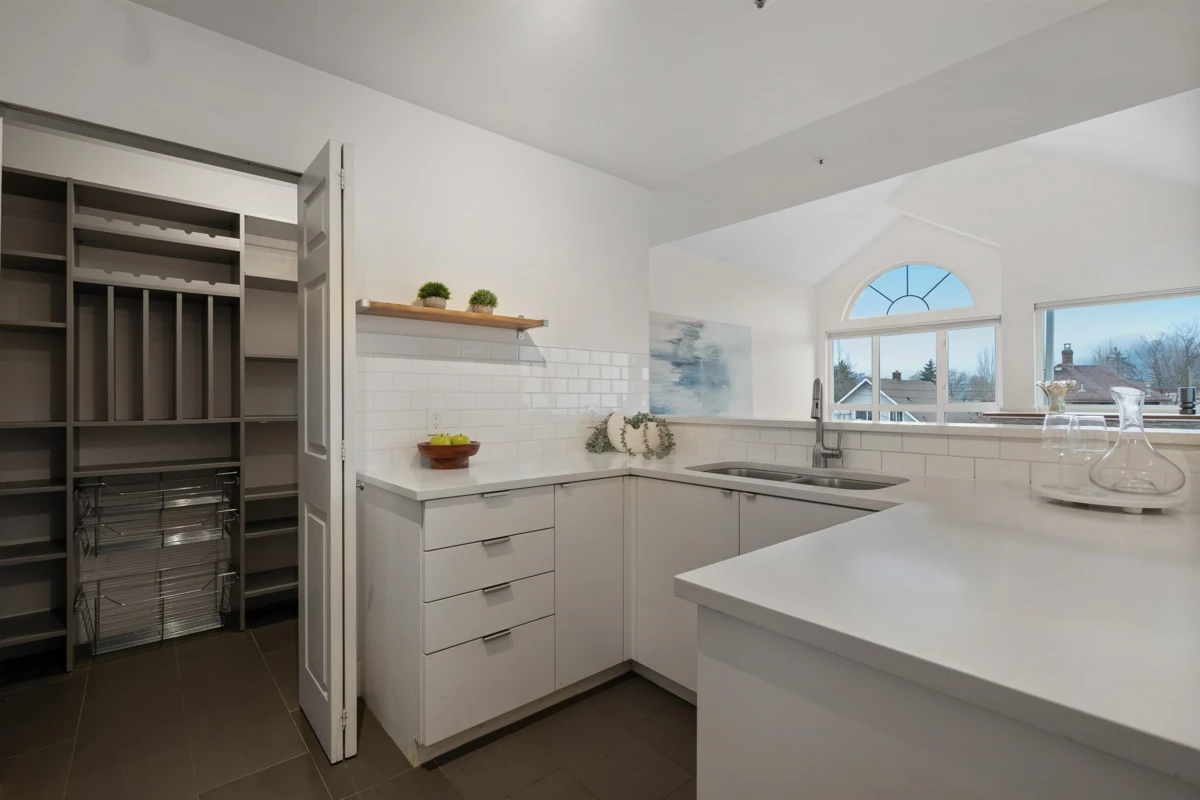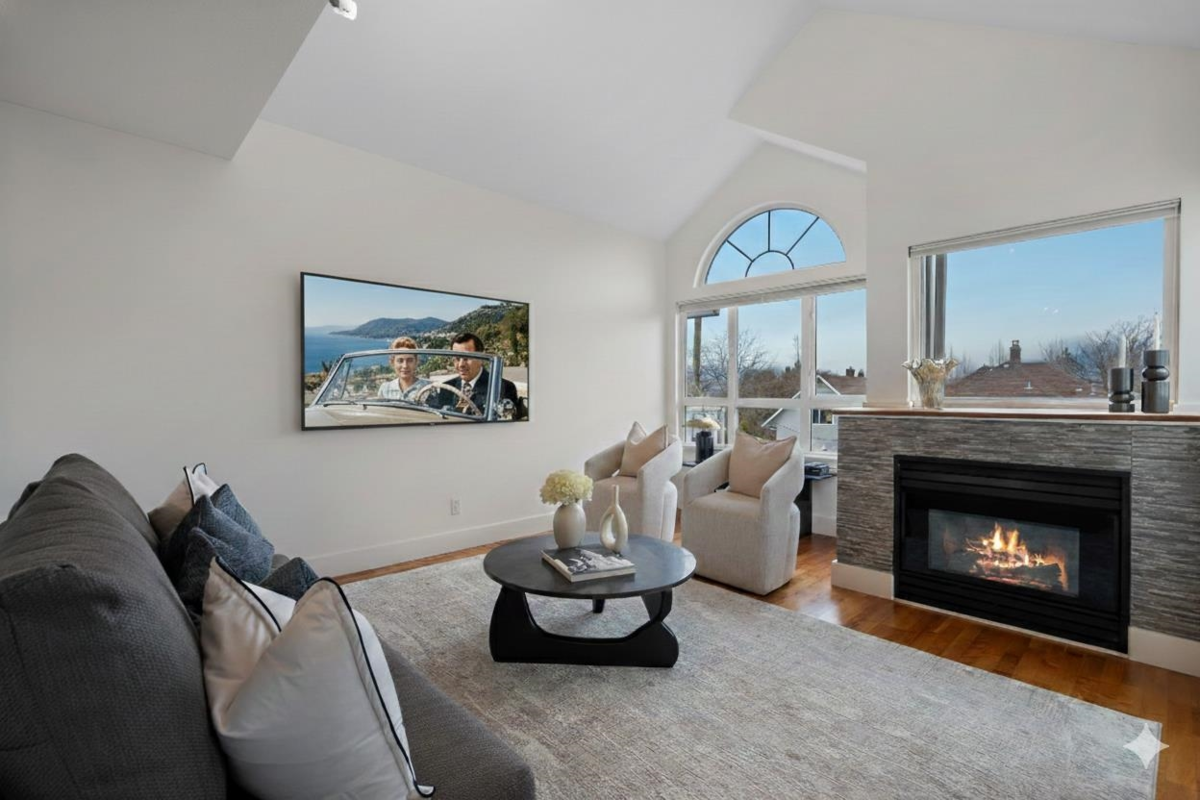 Welcome home to this bright and beautiful penthouse corner unit, perfectly located in the highly sought-after pocket of vibrant East Van, just steps from the energy of Commercial Drive. Nearly 900SF with a fantastic two-bedroom, one-bath layout, this home is defined by soaring vaulted ceilings and an abundance of natural light pouring in through expansive windows. Enjoy stunning views of the north shore mountains from every room and spacious balcony. Engineered hardwood floors, a cozy gas fireplace, and an open kitchen make this space ideal for entertaining or relaxing at home. Complete with in-suite laundry and a huge in-suite storage room that doubles perfectly as a walk-in pantry. A rare penthouse opportunity in one of East Van’s most beloved neighbourhoods. Call for private showings!