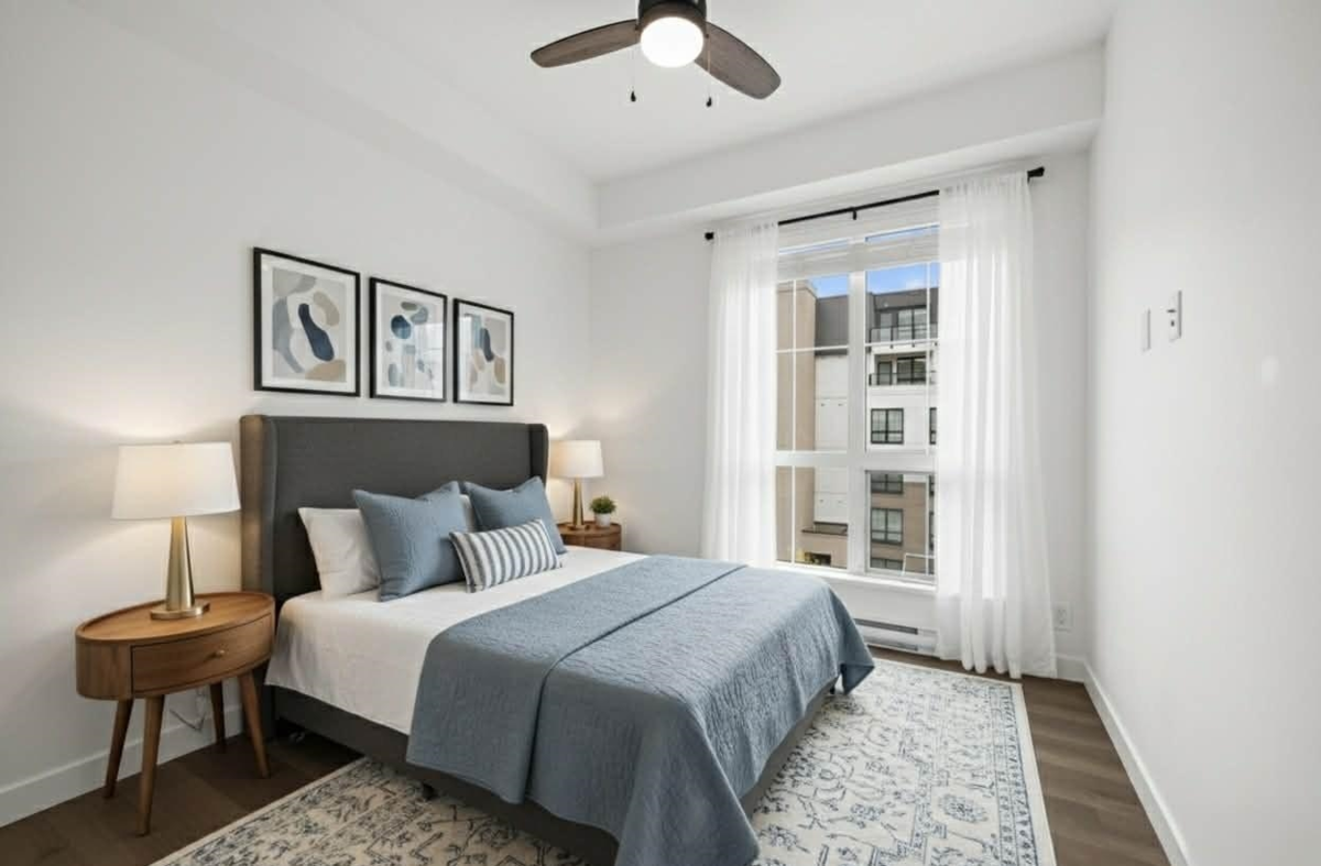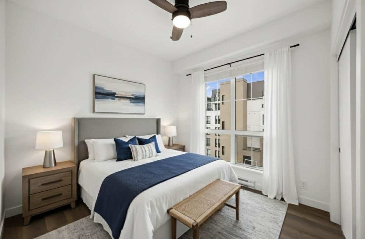 Welcome to this stunning 3-bedroom + den, 2-bath penthouse in the heart of Latimer Village. Offering approximately 1,300 sq ft of well-designed living space, this NE-facing corner home by award-winning Vesta Properties is filled with natural light and features 9' height ceilings throughout. The modern kitchen is designed for both everyday living and entertaining, complete with stainless steel appliances, gas stove, quartz countertops, and an oversized island. Durable laminate flooring runs throughout the home, while the den has been professionally customized into a functional home office. Close to Willowbrook Shopping Centre, Costco, Highway 1, parks, and schools. A rare penthouse opportunity offering space, comfort, and lifestyle in one of Langley’s most desirable neighborhoods.