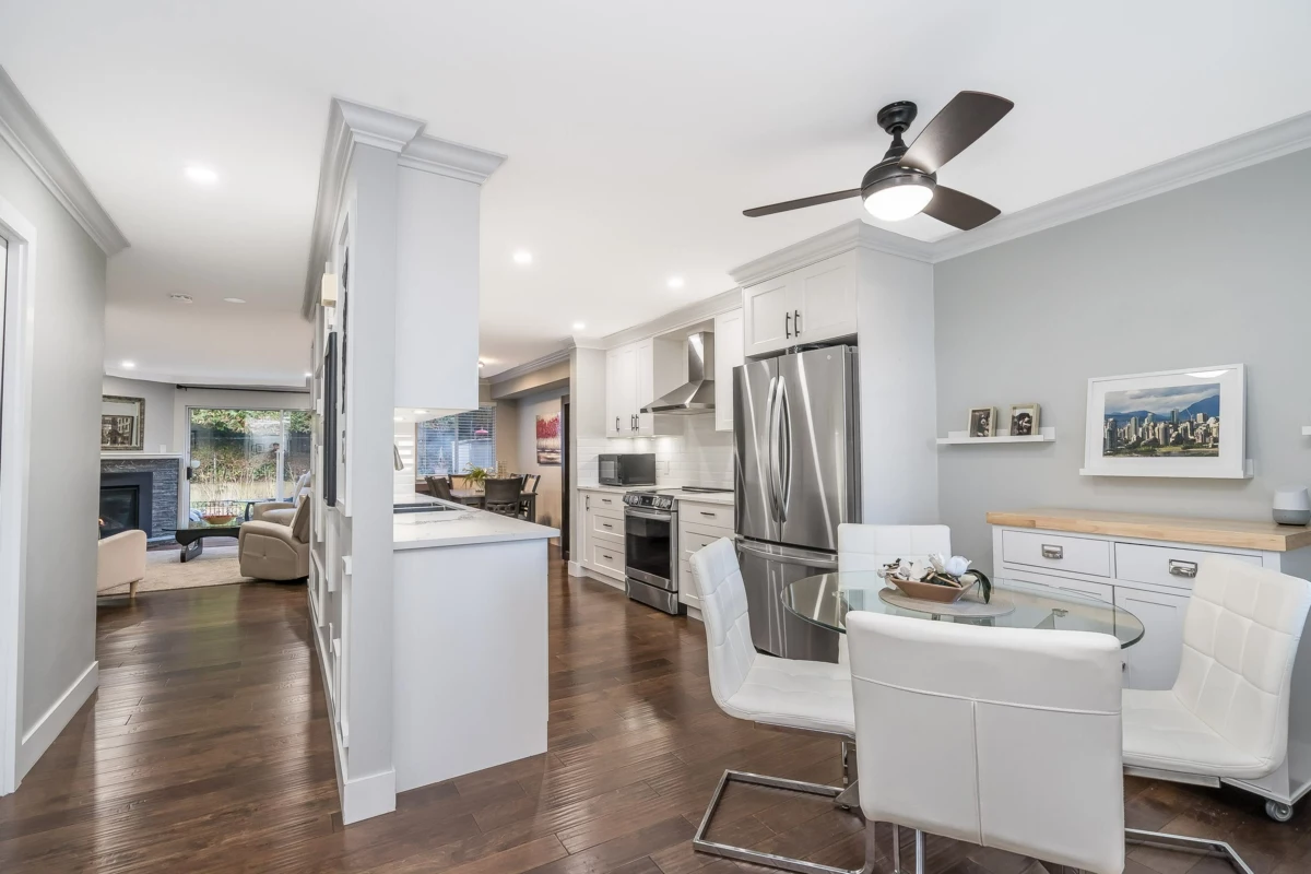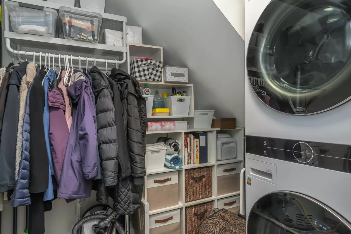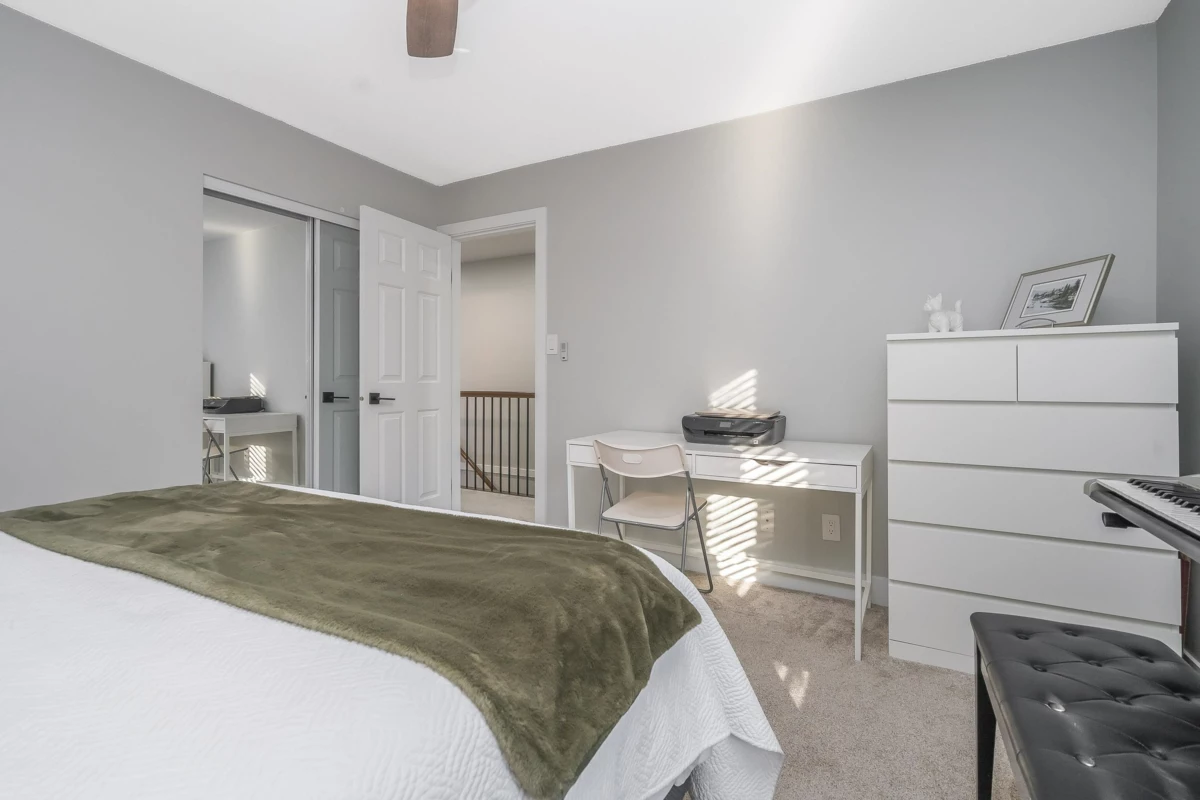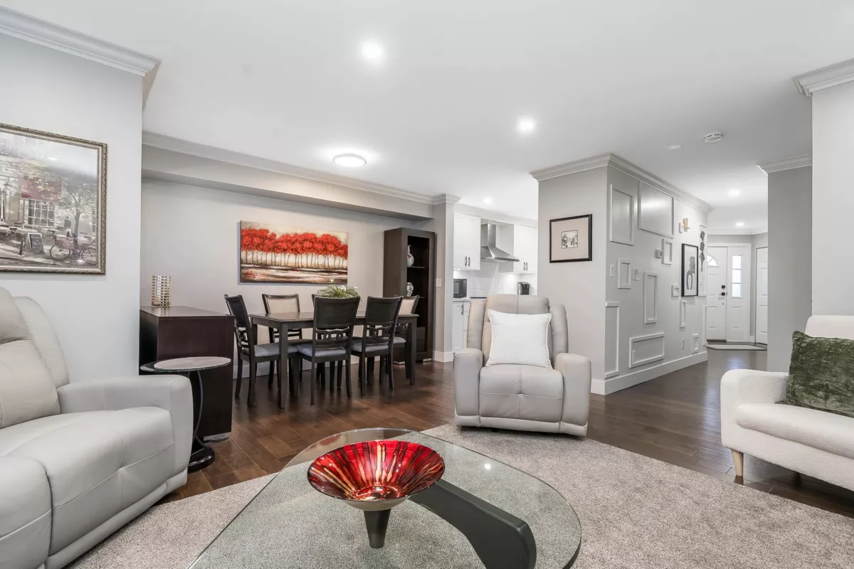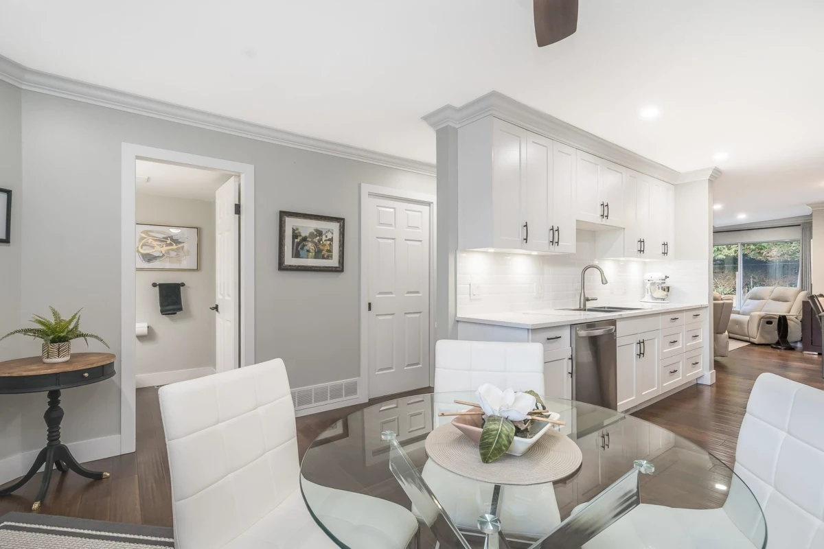 Absolutely beautifully updated from top to bottom! Rich hardwood floors flow throughout the main level, complementing a timeless white kitchen loaded with quartz counters and new quality appliances. The living room features a newer gas f/place with surround and hearth, plus sliders to a private backyard and newly poured patio—perfect for entertaining. A powder room and laundry/storage with new washer and dryer complete the main floor. Upstairs, the spacious primary bedroom offers an updated ensuite and private sundeck, along with new carpets throughout. All bathrooms have been fully renovated, and major upgrades include updated PEX plumbing, new furnace, A/C, hot water tank, crown mouldings, millwork, light fixtures, door hardware, window coverings, and garage door opener. Simply put WOW!