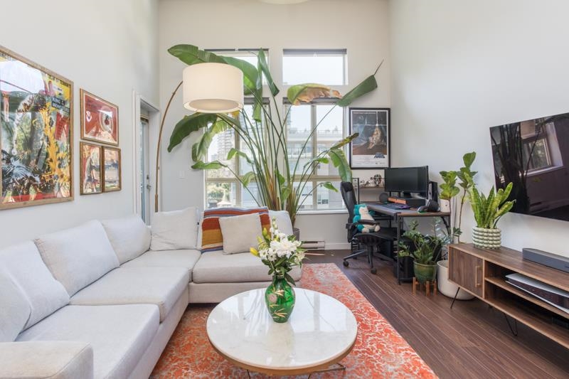 Top floor unit with overheight (12') ceilings that let you know this large one bedroom stands above the rest. Spacious living area allows for highly functional zones to lounge, work or socialize. Plenty of room for two in the well appointed kitchen. Take advantage of the height in the walk in closet for extra storage. One parking stall and storage locker included. Full amenities building next door has everything you need from gym, to pool table, party room, study space and a secured basketball court. Victoria Hill offers a variety of shops just steps away and a short walk into Queens Park puts you under the canopy of an urban forest.