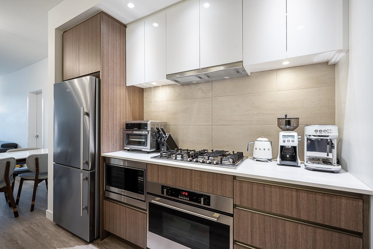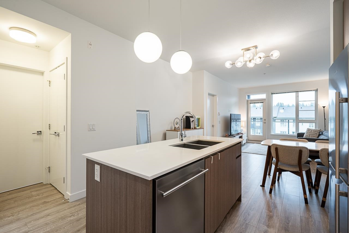 Jr. 2 Bed unit at Nelson on Foster in Lougheed/Burquitlam! Positioned on the quiet, east side of the building, this home offers peaceful living with plenty of natural light, and airy 9' ceiling enhances the spacious feel throughout. Functional layout provides privacy, with 2 bdrms on opposite sides, including a spacious primary bedroom with a 5pc cheater en-suite. Full-size kitchen features s/s appliances, quartz countertop, spacious pantry, and large island perfect for cooking and casual dining. Open layout flows seamlessly to an oversized, covered balcony overlooking the courtyard. Walking distance to groceries, restaurants, YMCA, bus routes, and both Lougheed/Burquitlam SkyTrain stn. Easy access to Hwy1, making commutes effortless in every direction. OPENHOUSE SAT/SUN, FEB 07/08, 2-4 PM