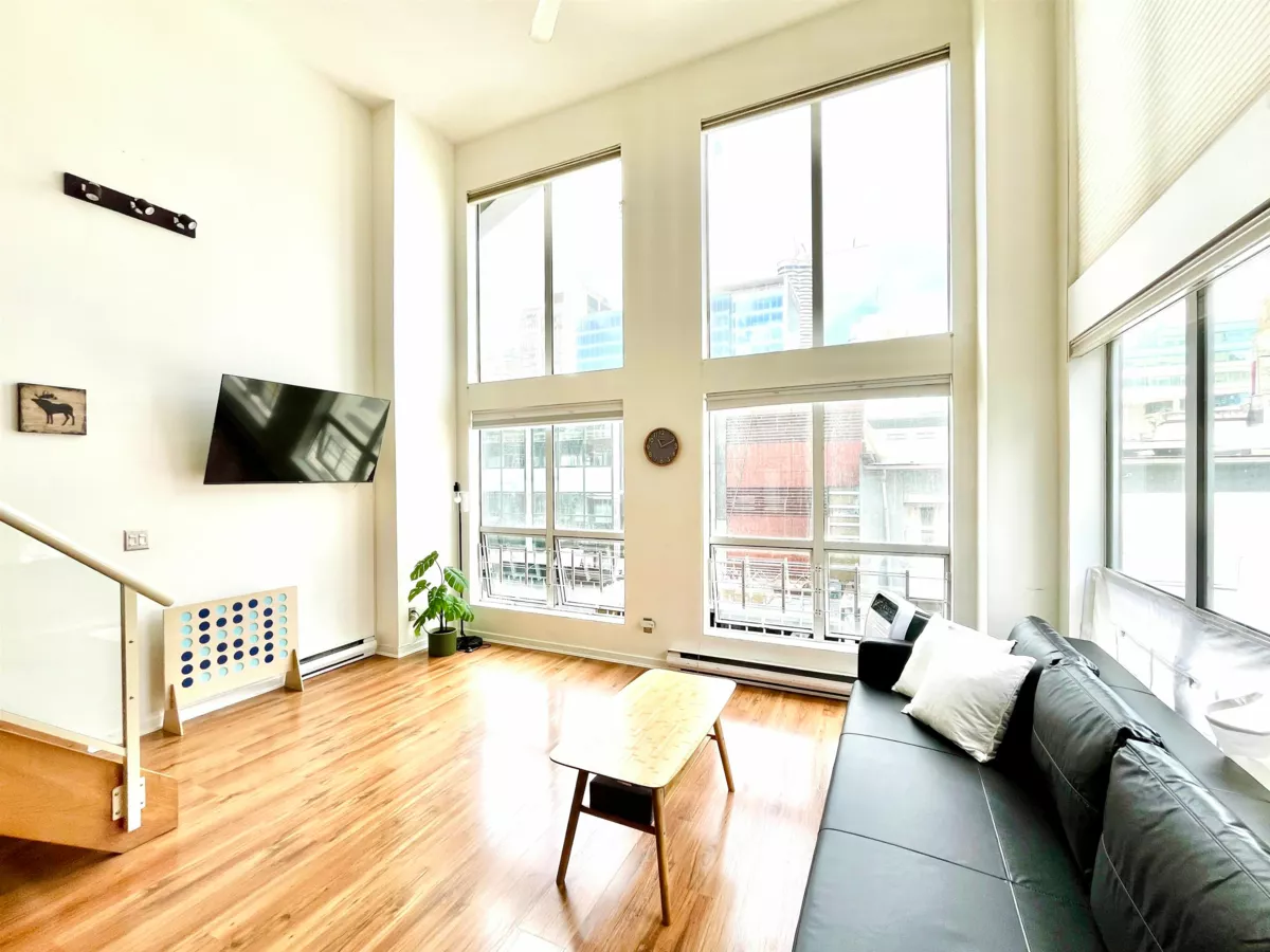 The spot, loft-living at its finest right in the heart of Downtown. Fantastic two level open floorplan featuring double height ceilings overlooking the city. Tastefully decorated & spacious living space with 16' ceilings & laminate floors. Fantastic common rooftop decks, BBQ area & exercise room. Insuite laundry, dishwasher & gas range. Amazing investment opportunity! Friendly tenant, easy to show!