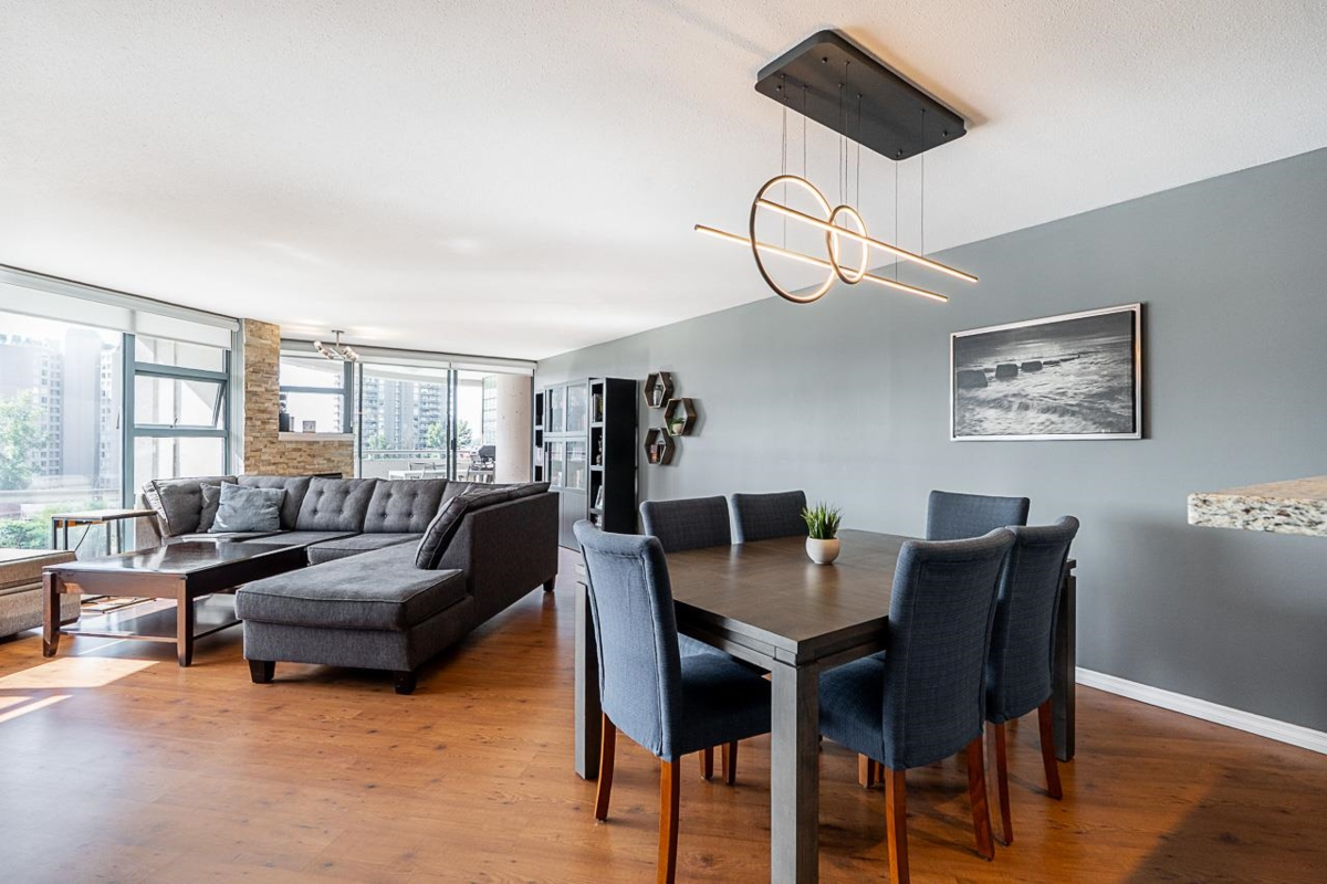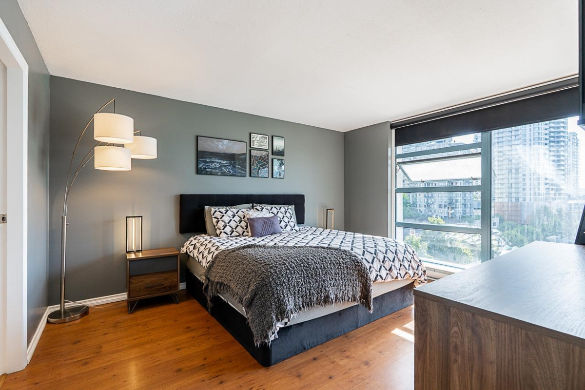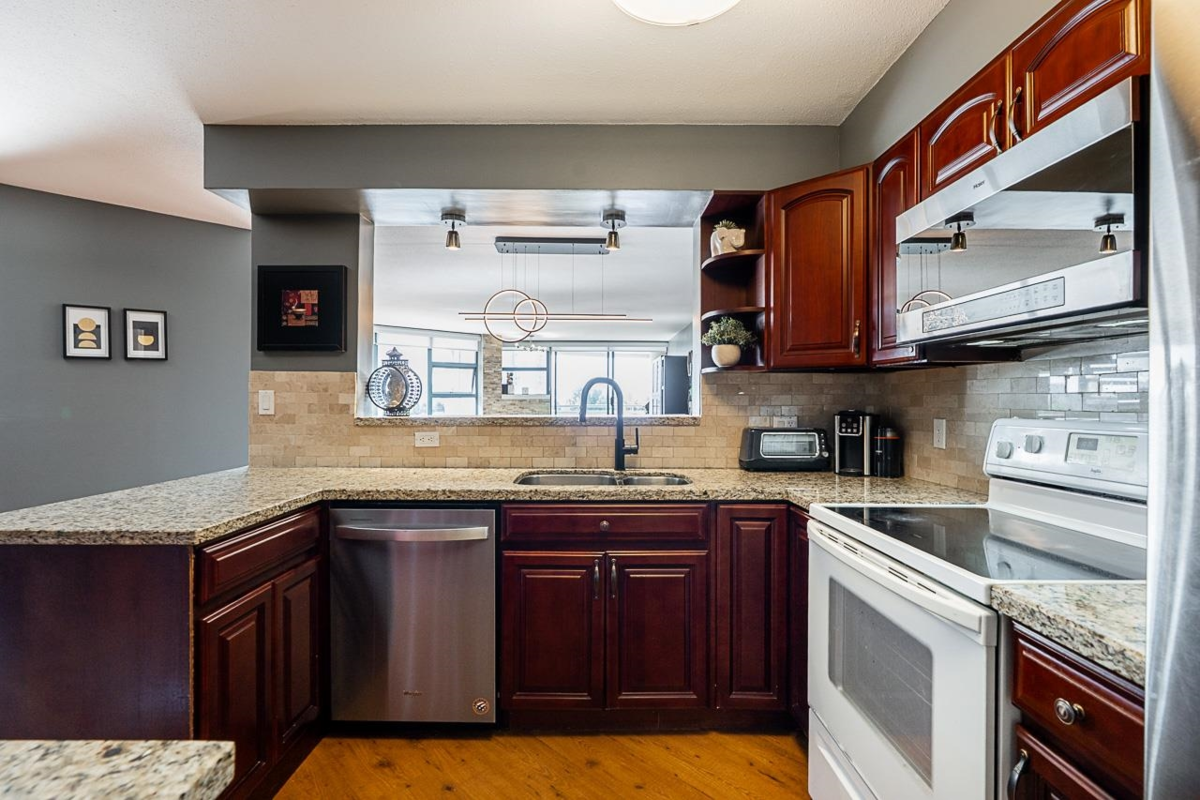Unbeatable Value! Discover urban living at its finest in this spacious two-bedroom, two-bathroom condo located in the heart of New Westminster. Boasting generous square footage and an open concept with southern views of the city and river. This home features an updated kitchen equipped with granite countertops, an undermount sink, and a large walk-in pantry/laundry area. The generously sized bedrooms offer floor-to-ceiling windows, flooding the space with natural light. Laminate flooring throughout adds a modern touch. Enjoy the convenience of being close to the SkyTrain, shopping, and the vibrant New Westminster Quay, featuring a diverse array of restaurants. This condo is a perfect blend of comfort and accessibility!