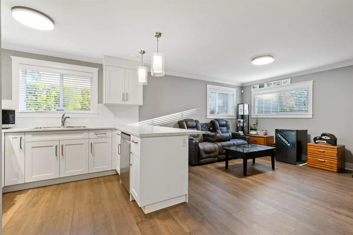 CURB APPEAL THAT WOWS! Welcome to your new home, a fully renovated gem on a serene no-thru road. This remodeled home boasts a stamped concrete driveway with Illuminated lighting & a lush app-controlled irrigated yard. Enjoy evening west facing farm sunsets. Inside, find Pravada engineered hardwood & vinyl plank floors. 1-bedroom basement suite, with its own laundry. Unwind in the primary bathrooms jetted master bath, new plumbing & electrical throughout the home, A/C for summer comfort. 20x20 Detached shop featuring epoxy floors, EV-ready & a heat pump. Double wide garage, Smart tech Nest entry, surveillance, & automated lighting this property blends luxury & functionality. RV parking, new septic field(2025). Nearby walking trails complete the package. Book your private showing today!