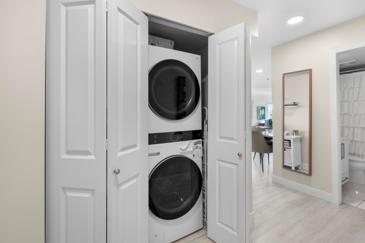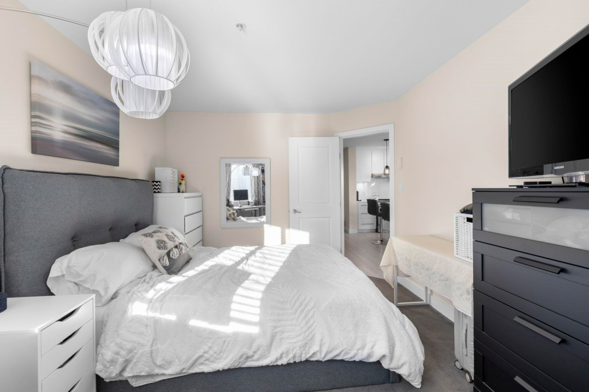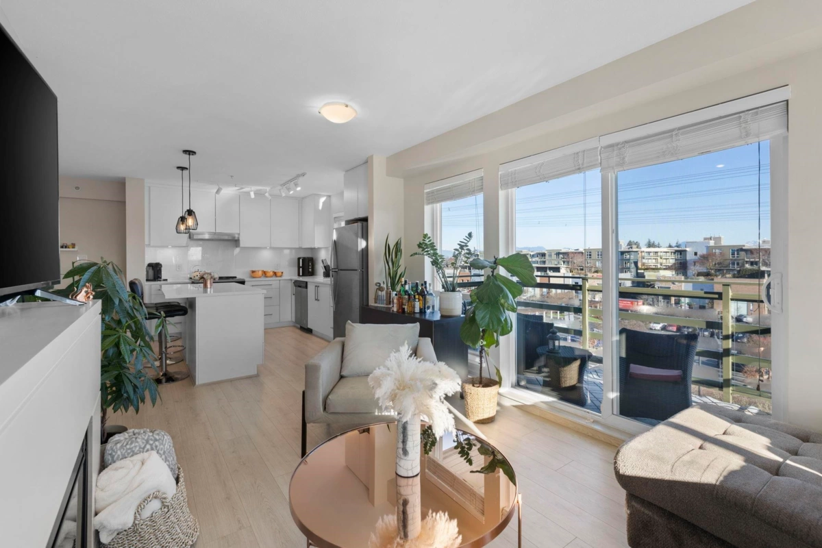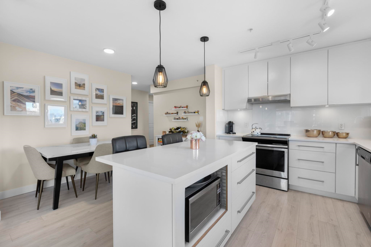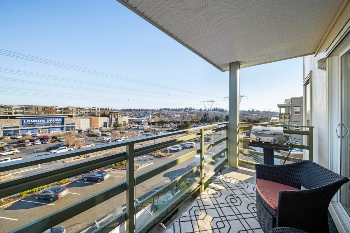 Welcome to PIVOT in Morgan Crossing - Situated on the top floor, this bright corner 1-bedroom home offers nearly 800 sq ft of well-designed living space. Expansive north and east windows bring in abundant natural light, enhancing the open layout. The kitchen features quartz counters, a generous island, and stainless steel appliances. A flexible bonus area easily accommodates a home office, bar setup, or added storage. Step outside to a roomy patio, perfect for outdoor dining. One secure parking stall close to the entrance and a large storage locker are included. Two pets welcome with no size limits and rentals allowed. Walk to shops, groceries, and restaurants just outside your door.