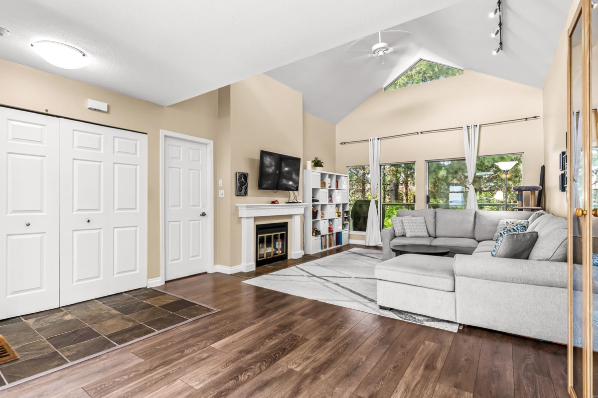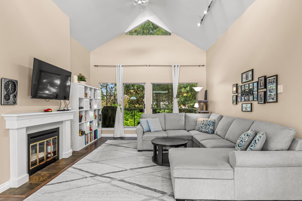 Welcome home to Atlin Court - Condo living that seriously feels like a house! A hidden gem on a quiet cul-de-sac in the scenic Riverview Heights, Coquitlam. TOP floor 2 bed 2 bath suite offering house-size space in every room. HUGE living room & dining room area with dramatic vaulted ceilings, that opens up to a private balcony. Large updated kitchen with new stainless steel appliances. A HUGE primary bedroom with a big ensuite bath and another bedroom on the other side of the suite. All just a few of the impressive features of this fabulous home. The beautiful courtyard/garden gives a townhome feel to this well-run building. Quick access to major routes and highways, walking distance to Austin Station with Save-on, Starbucks, restaurants. shops & parks. Come see ~ don’t miss this beauty!