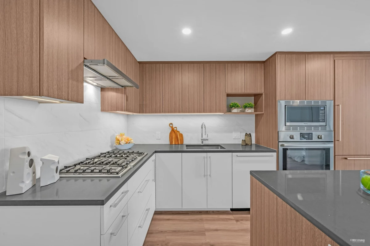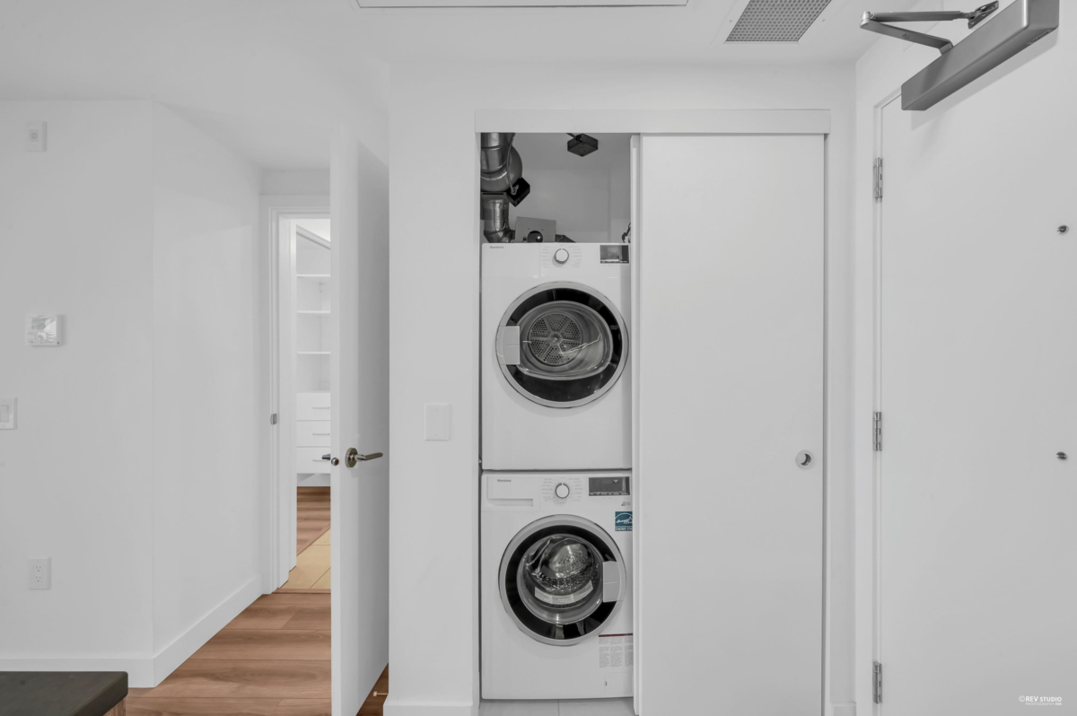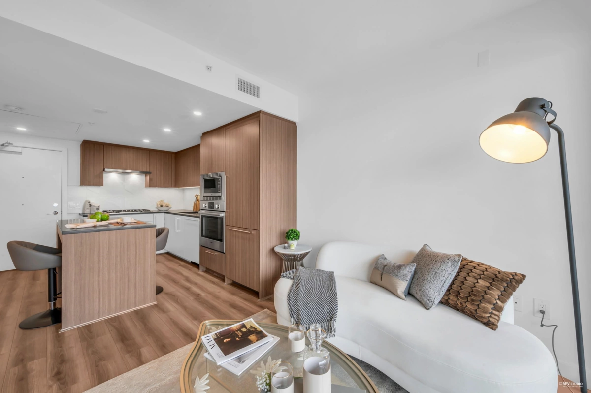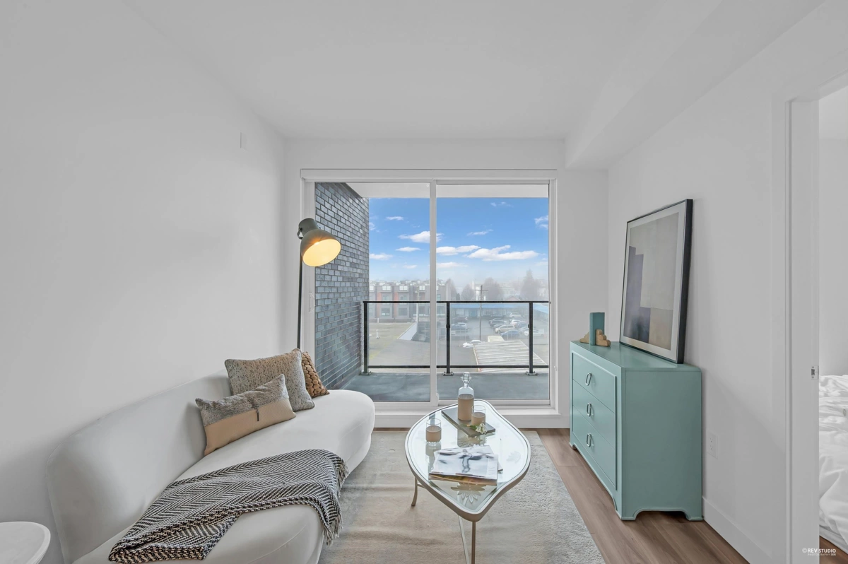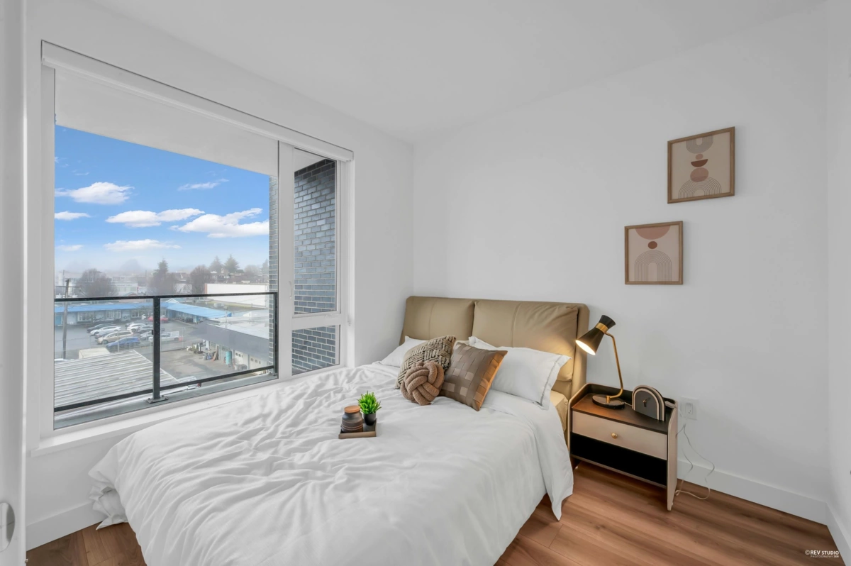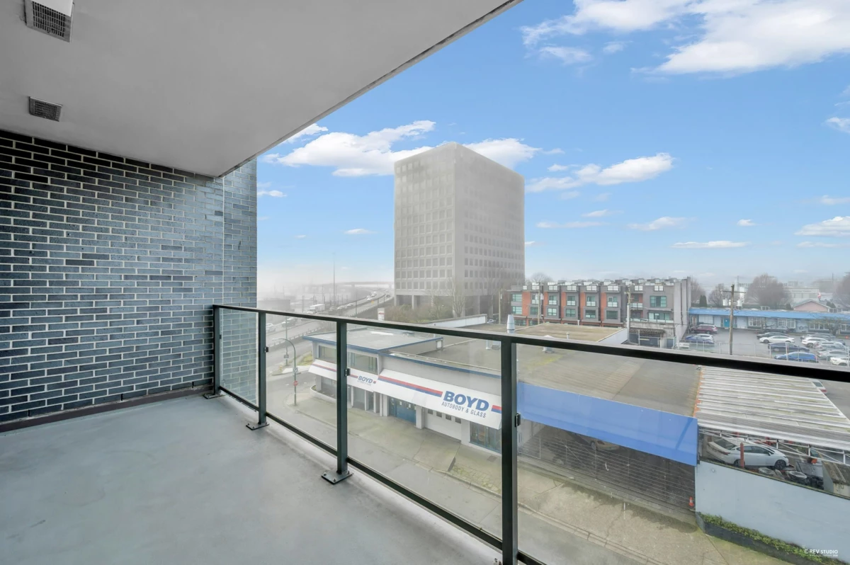 CALLING ALL INVESTORS AND FIRST TIME HOME BUYERS! This 449 SF 1 Bed 1 Bath home is on the QUIET side with UNOBSTRUCTED City View. Vancouver Westside's new luxury CONCRETE & AIR-CONDITIONED condo in the heart of Marpole! Functional floorplan with no wasted space, open kitchen features BOSCH stainless steel appliances: gas range, FULL-SIZE integrated fridge, plenty of counter space & cabinets for storage. Floor-to-ceiling windows in the living room provide tons of natural light & access to a 102 SF covered balcony! Bedroom can fit a King Size bed with a walk-through closet to a cheater ensuite wrapped in beautiful bath tiles & cabinetry. 1 PARKING & LOCKER. Rentals & Pets Allowed! Ezymart downstairs, 5 minutes drive to YVR, Marine Drive Skytrain, T&T Supermarket, Cineplex, retail & dining!