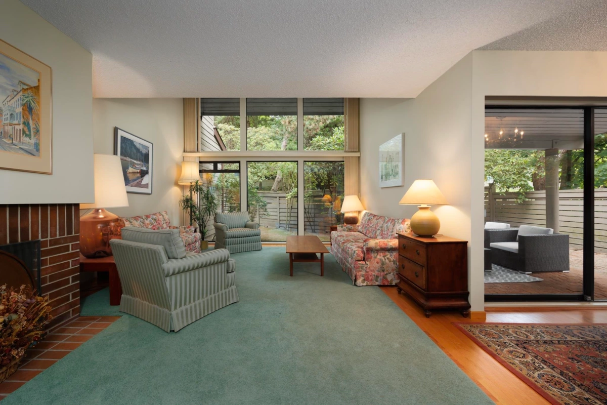 A rare find indeed! 2970 sq ft 3 bedroom and den, 2.5 bathroom end unit townhouse in coveted Yew St. complex in Arbutus Village. So much opportunity here. Grand layout features floor to ceiling windows and 15 ft ceiling in living room, large principal rooms to accommodate house-size furniture, bright sunny southern exposure, 2 gas fireplaces and almost 700 sq ft of private patio space. Tons of space downstairs for potential rec room, bedroom and bathroom. Enjoy 2 covered parking stalls, proximity to beautiful green space, easy access to heated swimming pool, 2 minute walk to Safeway and liquor store, and plenty of visitor parking. 3 blocks to Trafalgar Elementary and Prince of Wales Secondary. Measurements approximate.