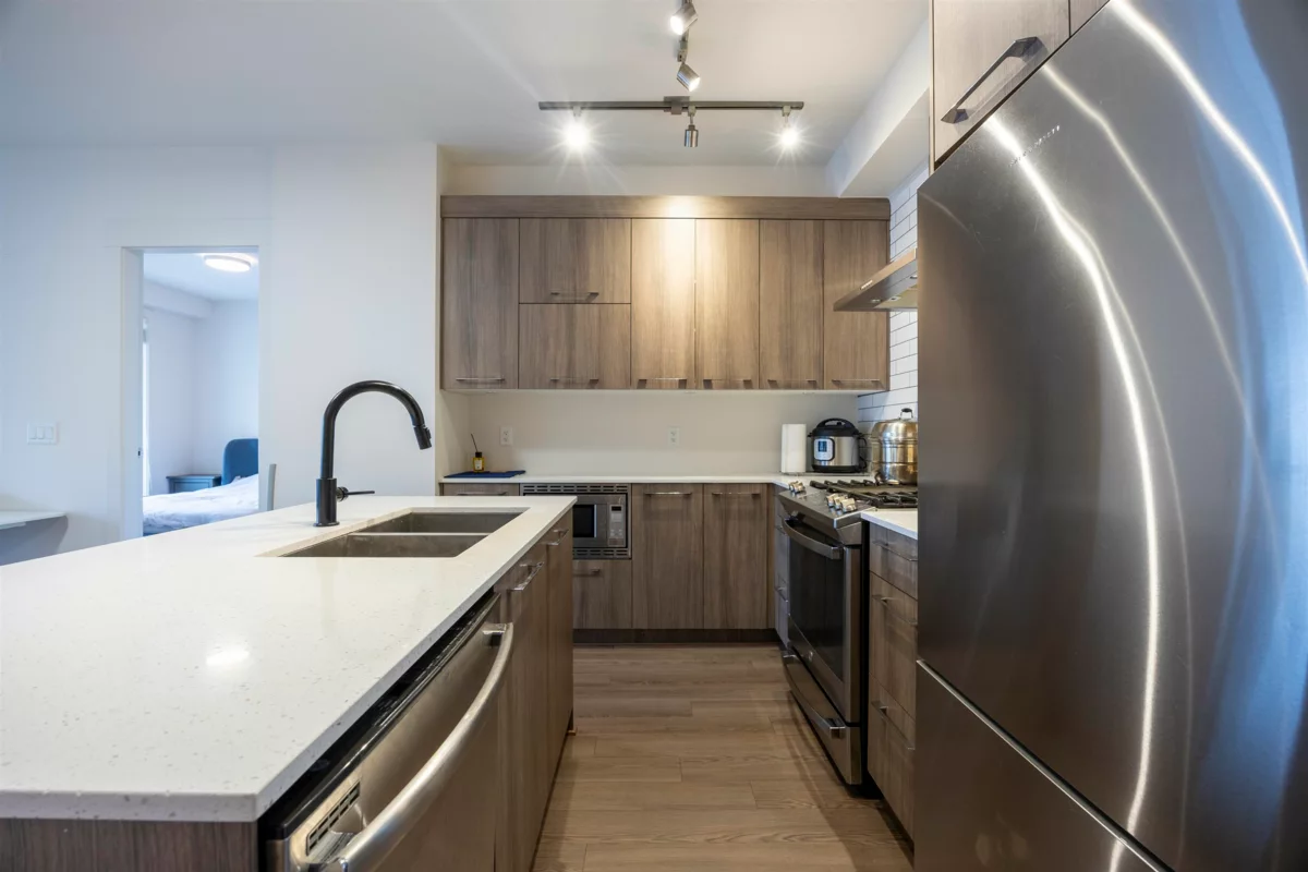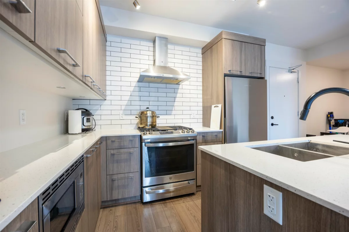 Capitol by Porte Homes, located in the vibrant core of Downtown New Westminster. This well-designed 2-bed, 2-bath home +1 den offers an open-concept layout based on the former display suite floor plan, featuring 9' ceilings, in-suite laundry, wide-plank laminate flooring, soft-close cabinetry, full-size stainless steel appliances, quartz counters, tile backsplash, and a spacious balcony. Just steps to the SkyTrain, shops, dining, schools, and parks. Enjoy modern comfort with a thoughtfully planned interior that maximizes every inch of space. Perfect for first-time buyers, downsizers, or investors looking for a quality home in a prime location