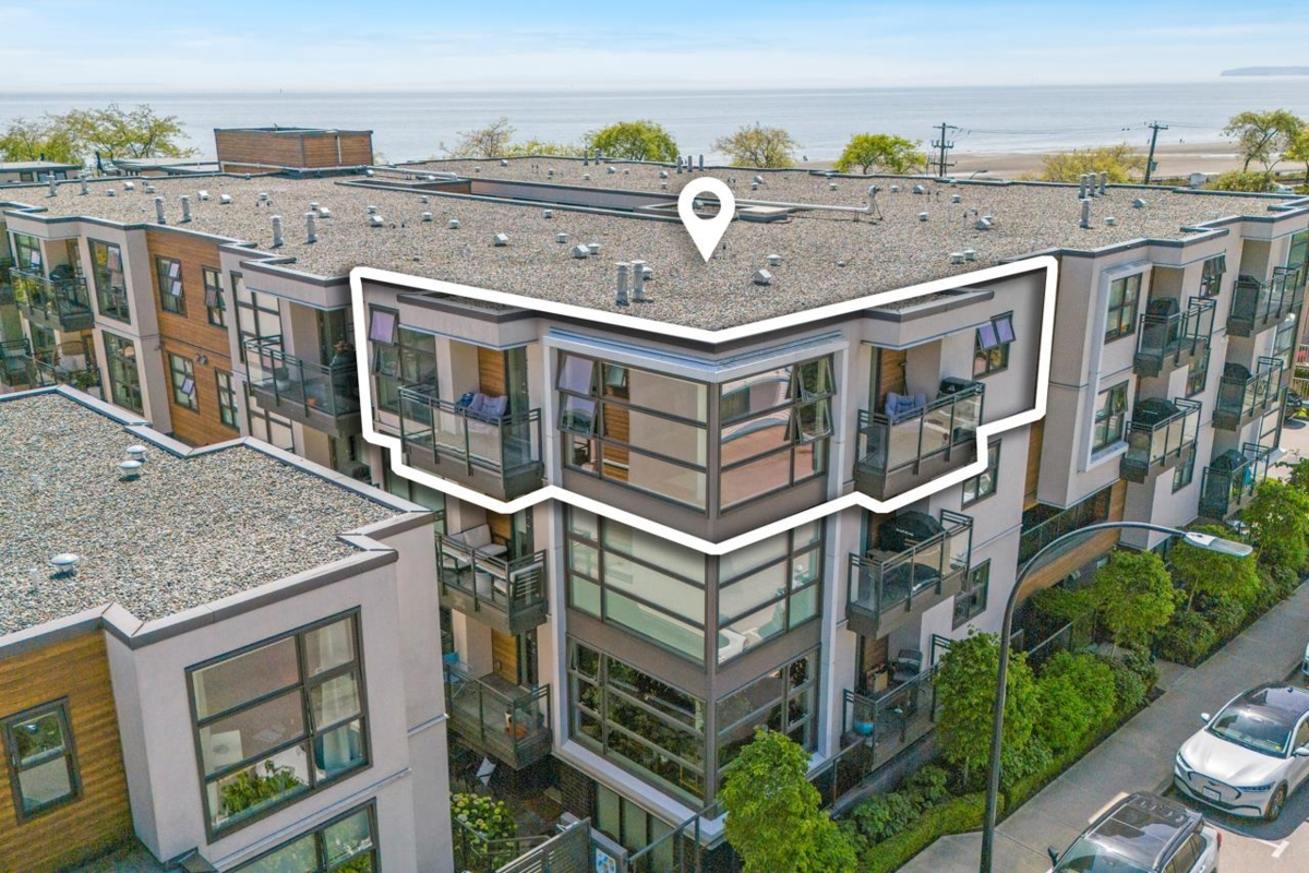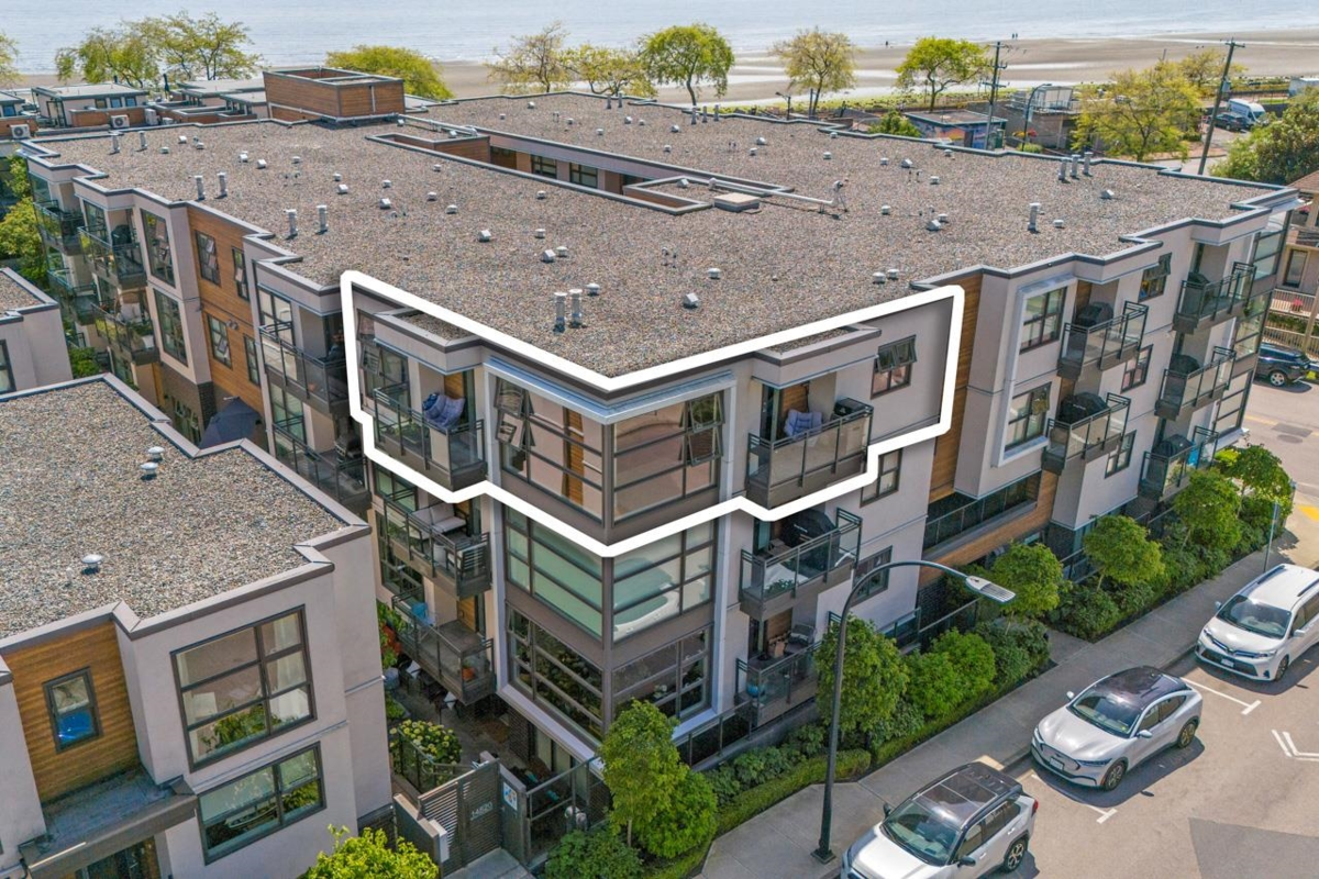 Stunning Top-Floor Corner Penthouse in Newport at West Beach! This exquisite 2 bed, 2 bath home boasts 2 spacious balconies, one with a gas bbq outlet & one with a peekaboo ocean view. The modern, open-concept kitchen features a gas range, large island & quartz countertops with a waterfall edge. The living room is complete with engineered hardwood floors, floor-to-ceiling windows and a gas fireplace. Home is on the quiet corner of the building & access to the courtyard. The location is unbeatable - stroll across the street to the beach, explore the scenic promenade, or visit Canada's Longest Pier. Marine Drive's vibrant dining scene is just steps away, ensuring you're always close to the best that White Rock has to offer. This isn't just a home; it's a gateway to an incredible lifestyle.