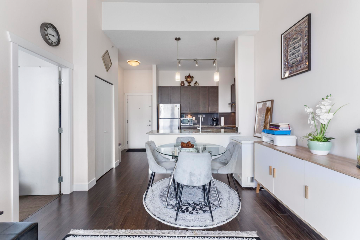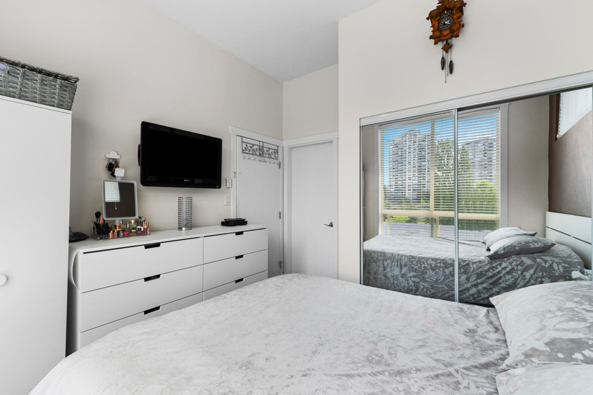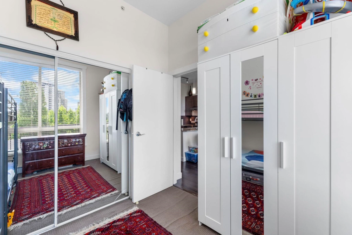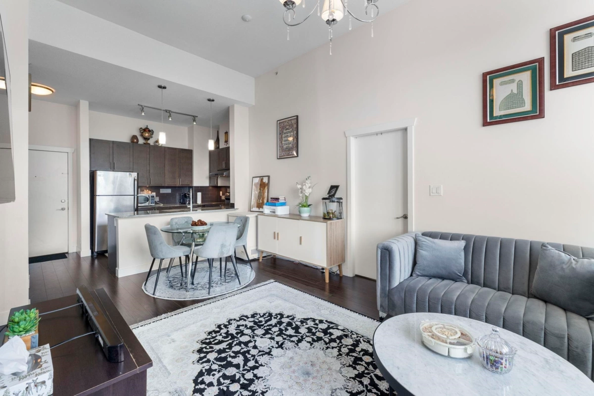 You’ll be stunned when you first walk into this amazing 2 BED, 2 BATH penthouse unit, soaring 14’ ceilings and oversized west-facing windows pour sunlight into the airy open-concept living space. The modern kitchen features granite counters, maple cabinetry, stainless steel appliances, and porcelain tile flooring. The spacious primary bedroom includes a sleek ensuite with a walk-in shower, while the second bedroom is paired with a full bath with tub. Complete with in-suite laundry, 2 PARKING STALLS, common storage, and a massive private patio perfect for summer lounging. All just steps from Gateway SkyTrain, grocery stores, banks, and more! Amenities include a furnished lounge, gym, conference room. Call for more information! Open House on 3-5pm Sat Jan 3 and 11:30am-1:30pm Sun Jan 4