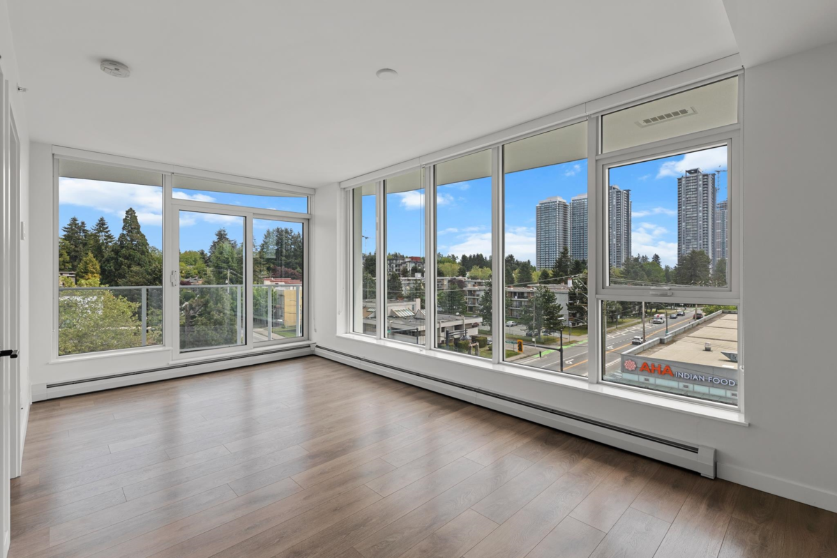 Georgetown One by Anthem Properties! Located in the HEART of Surrey City centre area, this 1 Bed/1 Bath home is on the 4th floor of the 30-story inaugural tower. Like new large bay window home has bonus 107 sqft of East facing patio space to enjoy incredible views. Open design features contemporary finishes incl S/S appliances, laminate floor, high ceiling cabinets + quartz countertops. Appr. 30,000 sqft of exclusive indoor/outdoor amenities space incl., fitness center, Study room, Designer lounge with gourmet kitchen, dining area and games tables, 1 guest suite, amenity terrace with quiet seating areas, dog run, outdoor fireside lounges and movie theatre w/ glass canopy for enjoyment, rain or shine. Close to KPU, SFU and the upcoming UBC Campus! Close to KPU, SFU and upcoming UBC Campus.