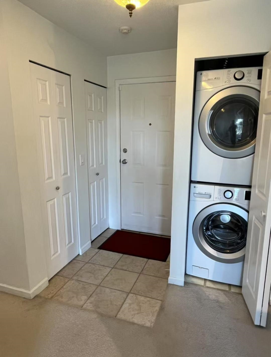 Beautiful 2 bedroom & 2full bathroom top floor unit! Including an EXTENDED and huge West-facing balcony, new reno, in-suite laundry and 2 underground parking spots and 2 big large storage lockers . Very close to schools, Superstore, Costco and Kings Crossings Mall. It is a good investment opportunity or staying.
