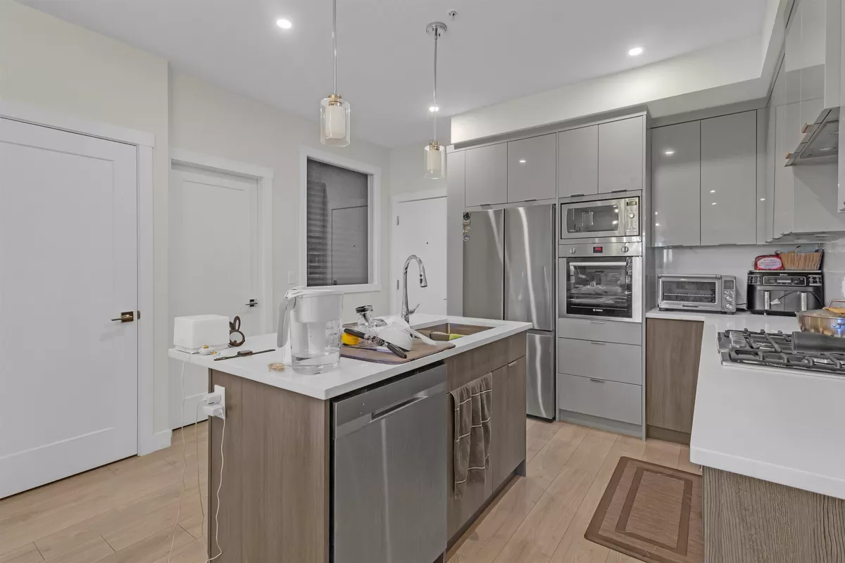 Discover modern living at its finest in this brand new 2-bedroom, 1-bath condo located in the highly sought-after Amson Square complex in Surrey. Perfect for first-time homebuyers or investors, this stylish unit features a contemporary kitchen with engineered stone countertops, polished tile backsplash, elegant pot lighting, and built-in air conditioning for year-round comfort. Enjoy premium amenities including a rooftop garden with breathtaking city and mountain views, a kids’ play area, and a spacious recreation room. Conveniently located just steps from transit, schools, shopping, and with easy access to Hwy 10 this home offers the perfect blend of comfort, convenience, and connectivity.