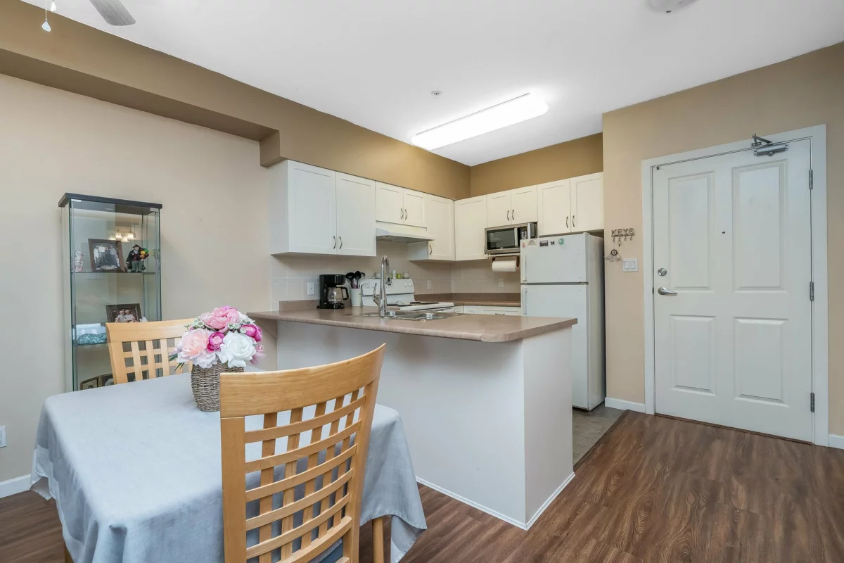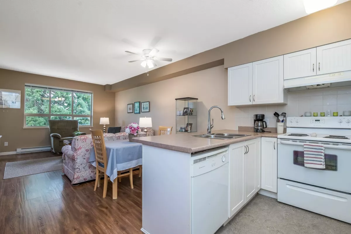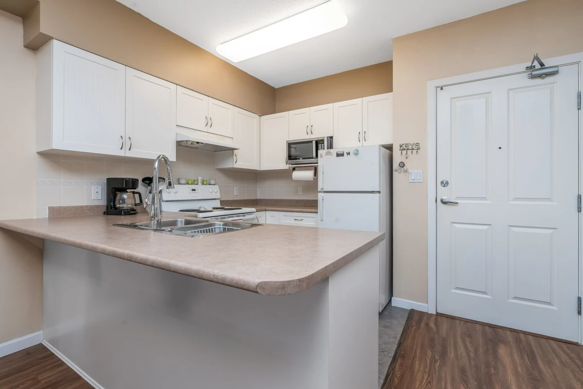 Welcome to Fleetwood Gardens - 55+ Adult Oriented Complex in Quiet Prime Location! Modern 1 Bed, 1 Bath Condo with 696 sqft of open-concept living! Big Windows offers NATURAL LIGHT throughout the entire living space, sleek kitchen, in-suite laundry & large bathroom with walk-in shower. Enjoy having your coffee or sipping a glass of wine on your 125sqft private balcony! Fleetwood Gardens offers an amenities room, exercise room, office space, rec rooms & a courtyard for your use. This unit comes with 1 parking spot and 1 locker. Located in a desirable area close to shopping, transit, and parks. Fantastic place to call home!