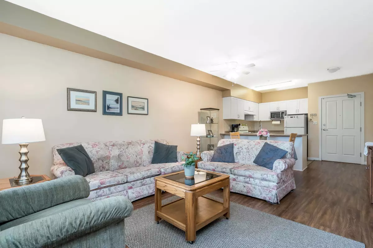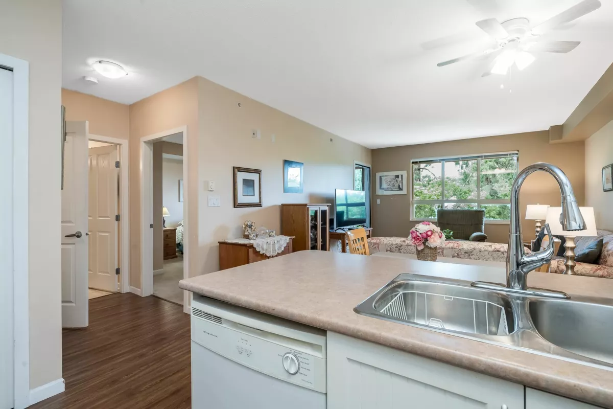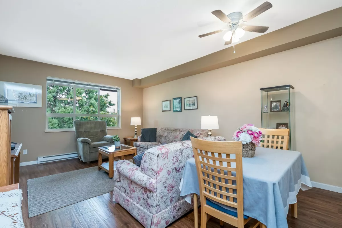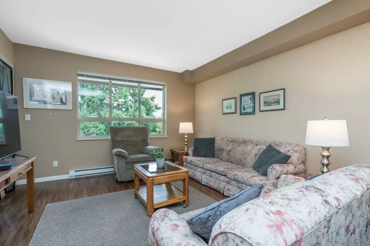Welcome to Fleetwood Gardens - 55+ Adult Oriented Complex in Quiet Prime Location! Modern 1 Bed, 1 Bath Condo with 696 sqft of open-concept living! Big Windows offers NATURAL LIGHT throughout the entire living space, sleek kitchen, in-suite laundry & large bathroom with walk-in shower. Enjoy having your coffee or sipping a glass of wine on your 125sqft private balcony! Fleetwood Gardens offers an amenities room, exercise room, office space, rec rooms & a courtyard for your use. This unit comes with 1 parking spot and 1 locker. Located in a desirable area close to shopping, transit, and parks. Fantastic place to call home!