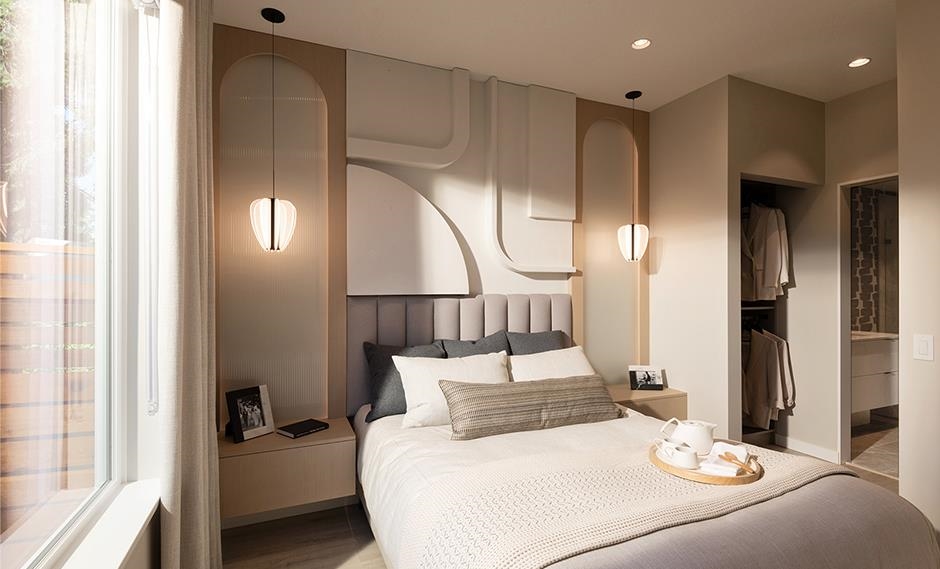 Welcome home to Polygon's Halo, situated between serene beaches and vibrant urban amenities. This modern 661 sq.ft. 1 bedroom home features overheight ceilings and laminate wood flooring throughout all living and sleeping spaces. The well-equipped kitchen boasts sleek stainless steel appliances, including a gas cooktop and engineered stone countertops. AC included! Plus, enjoy exclusive access to over 9,800 square feet of combined indoor and outdoor amenities, including a fitness studio and a lounge. Completion is estimated for Summer 2026. Visit our sales office at 15231 20th Avenue in South Surrey. Open by appointment.