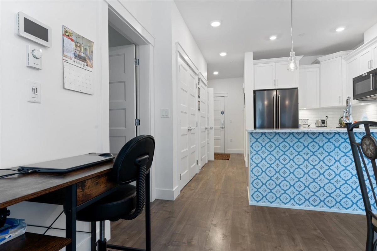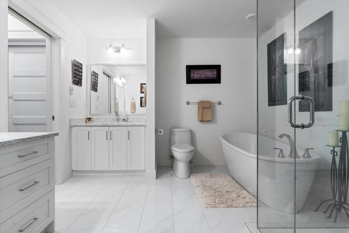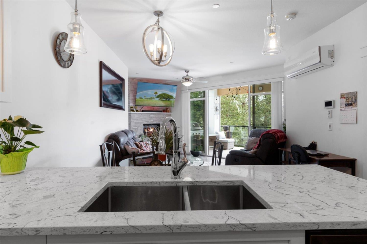 PRIME REAL ESTATE OPPORTUNITY! Live or invest in one of the most desirable locations steps from the Rotary Trail, Vedder River & Garrison Crossing! This modern & spacious like-new 1 bdrm condo features an open-concept layout & a stunning gourmet kitchen equipped w/ KitchenAid Black Stainless appliances, gas stove, subway tile backsplash, quartz counters, soft-close cabinetry & under-cabinet lighting. Bdrm has huge luxury ensuite w/ a soaker tub, frameless glass shower & double sinks plus w/i closet & custom shelving. Addt features incl a/c in the living room & bedroom, a large semi-private covered patio w/ a million-dollar mountain views, 1 secured underground parking stall & a large storage unit. Beautiful finishes, low strata fees & pet-friendly bylaws make this condo a win! Call today!