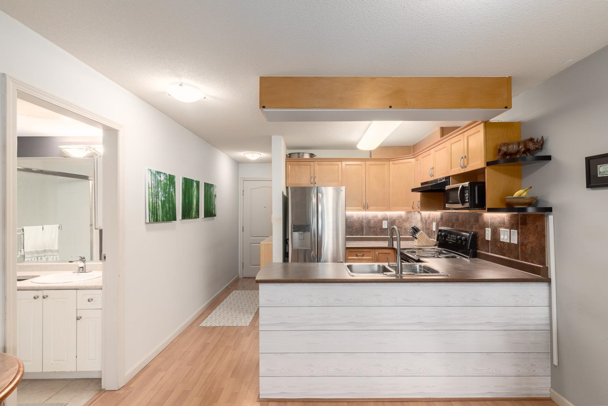Penthouse living at The Mayfair! This bright 1 bed + den condo offers a peaceful, green outlook and a smart, efficient layout in the heart of Main. Enjoy the privacy and quiet of a top-floor unit with no one above you, plus secure parking and a storage locker. Inside, there's also an in-suite flex/storage space for added convenience. The den is perfect for a home office or guest area. Steps to shops, cafés, and transit. Urban living at its best!