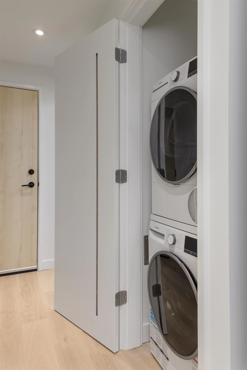 Welcome to The Saint George by Reliance Properties, a boutique collection of modern homes designed for today’s urban lifestyle. This thoughtfully crafted residence features 9’ ceilings and white oak engineered hardwood flooring throughout for a bright, refined feel. The signature Living Wall offers seamless millwork from entry to kitchen, providing integrated storage, an entertainment unit, and a built-in work-from-home desk. The sleek, fully integrated kitchen is equipped with a premium Bosch appliance package from Germany. Also featuring glass room dividers for flexible living and added privacy. Enjoy a rooftop social space, EV-ready parking, and peace of mind with a comprehensive 2-5-10 warranty. Open house Sat Jan 24 from 1:00-3:00.