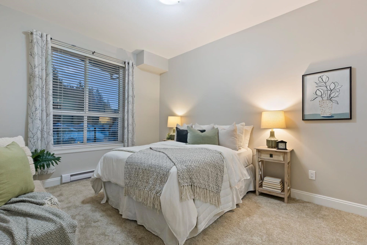 Beautiful 2 bed/2 bath + den top floor condo in Ameera Place, prime location minutes to Garrison Crossing, schools, shopping, Cheam Leisure Centre, Vedder Rotary Trail and Cultus Lake. 9' ceilings throughout and stunning vaulted ceilings in the main living space with ample windows letting in lots of natural light. Open concept kitchen with stainless steel appliances and eating bar. Spacious primary bedroom with walk in closet and ensuite with separate soaker tub. Lots of space with a 2nd bedroom, den and storage room. Secure underground parking stall & spacious balcony complete the package!