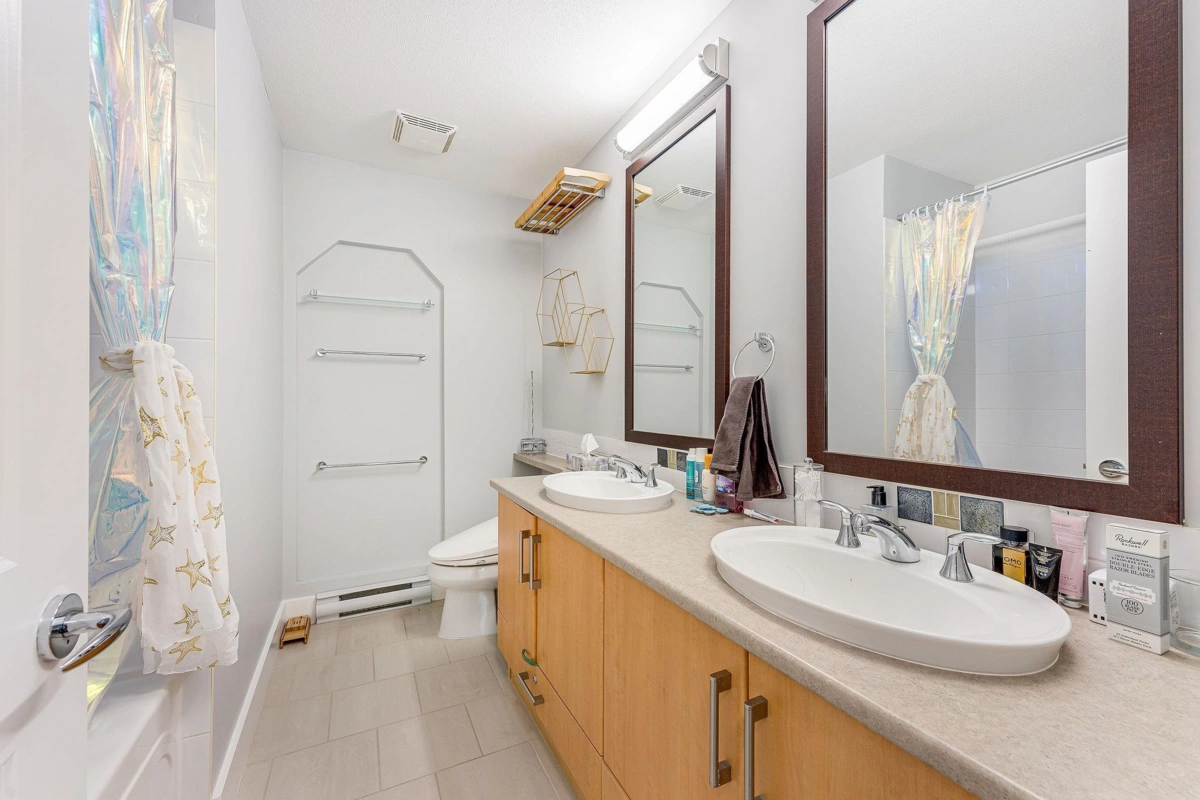 Perched on the top floor of Journey by award-winning developer Adera, this exceptional 2 bed and 2 bath home offers refined West Coast living. The bright, open layout is enhanced by dramatic 11-foot ceilings and oversized windows that fill the space with natural light. Thoughtfully designed, the suite features a gas fireplace, a chef-inspired kitchen with gas cooktop and expansive pantry, and stylish laminate flooring throughout. Step outside to a spacious wraparound balcony and take in peaceful views of the lush Greenway below. Residents also enjoy access to a common rooftop terrace showcasing stunning ocean views and unforgettable sunsets. 1 parking and 1 locker. Ideally situated steps from the Old Barn Community Centre, transit, and close to schools, parks! COME VIEW TODAY!