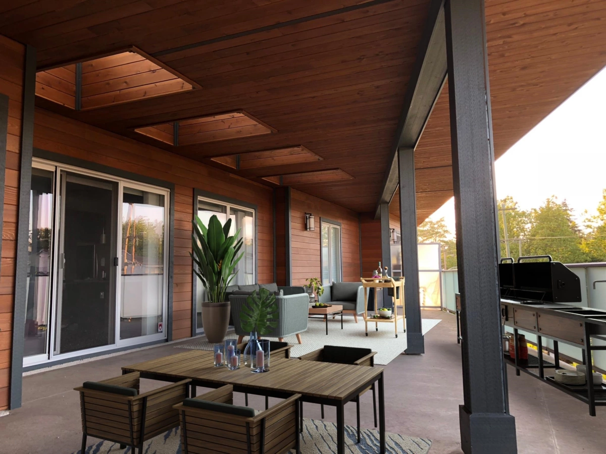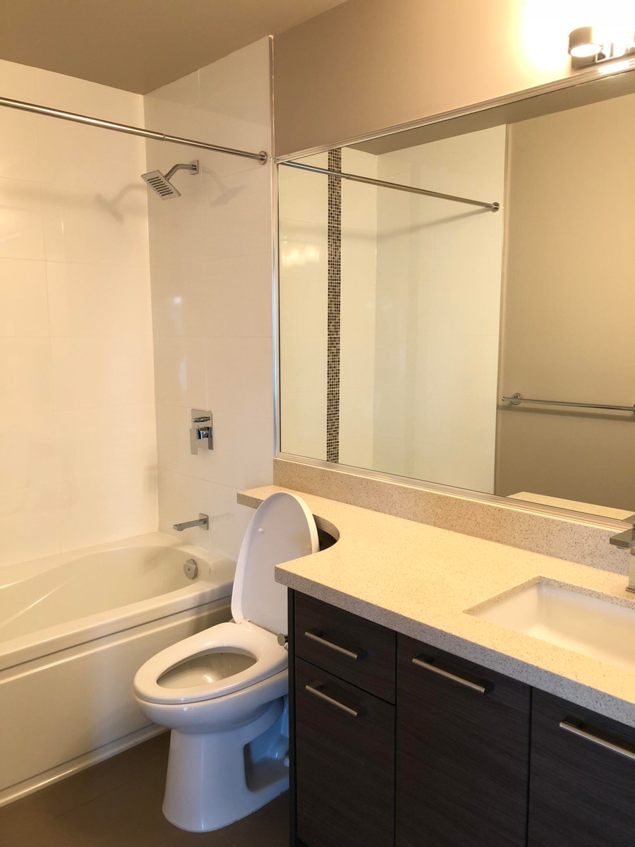 TOP FLOOR PENTHOUSE with MASSIVE 600+sqft balcony! Welcome to this stunning 2 BED + 2 BATH unit perched on the top floor. This home features a delightful kitchen w granite c/t, s/s appliances, soft-close drawers, and 40" cabinets. The open layout with spacious bdrms strategically positioned on either side ensures max privacy and leads out to the LARGEST outdoor space in the building; A 600+SQFT outdoor space; adorned with cedar siding and soffits, boasting 4 large skylights—an amazing space for year-round entertaining and seamless indoor-outdoor living. The contemporary building offers a social lounge, gym, expansive rooftop deck, and beautiful gardens. Located just MINUTES from the skytrain and public library.