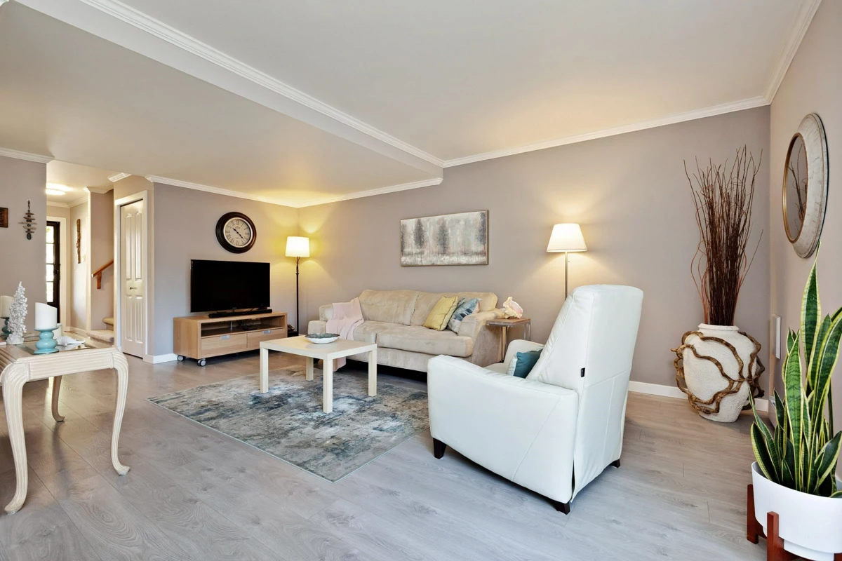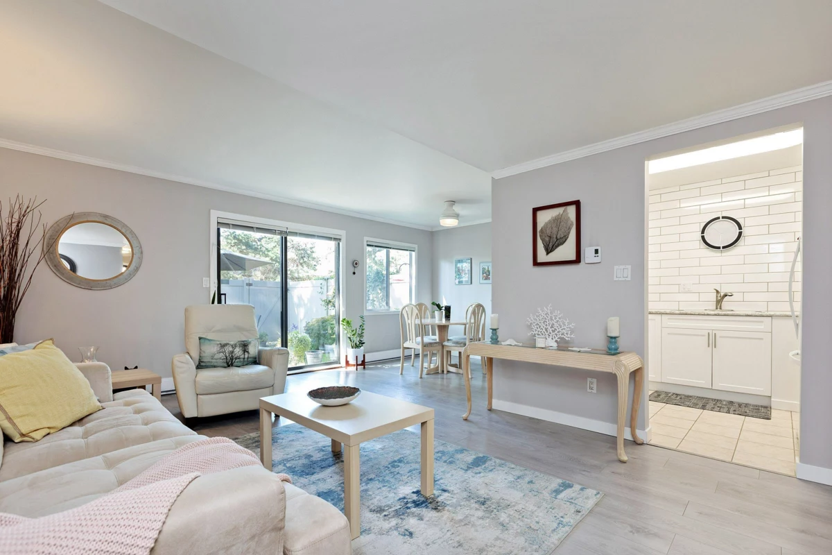 Discover the perfect blend of comfort & space in this fully renovated 2-level townhome! Immaculately maintained it boasts 3 bedrooms & 2 bathrooms. Step inside to find a stunning array of upgrades including kitchen countertops, cabinets, appliances, light fixtures, brand new floors, paint & modern bathrooms. Convenience is at your doorstep with schools, shopping, parks, and transit options moments away. Kids will love the nearby playground while you'll relish the privacy of your own fenced south-facing yard & north-facing balcony off the primary bedroom. This unit also offers generous storage space ensuring clutter-free organized living. Embrace the lifestyle you deserve and make this townhome yours! Low strata fees & healthy CRF - Join us at the OPEN HOUSE August 05/06/07 from 2PM-4PM!