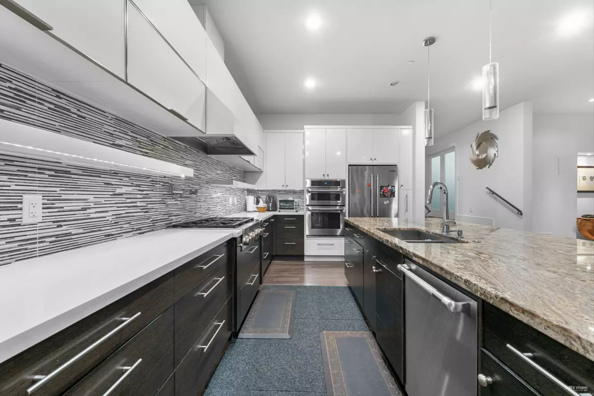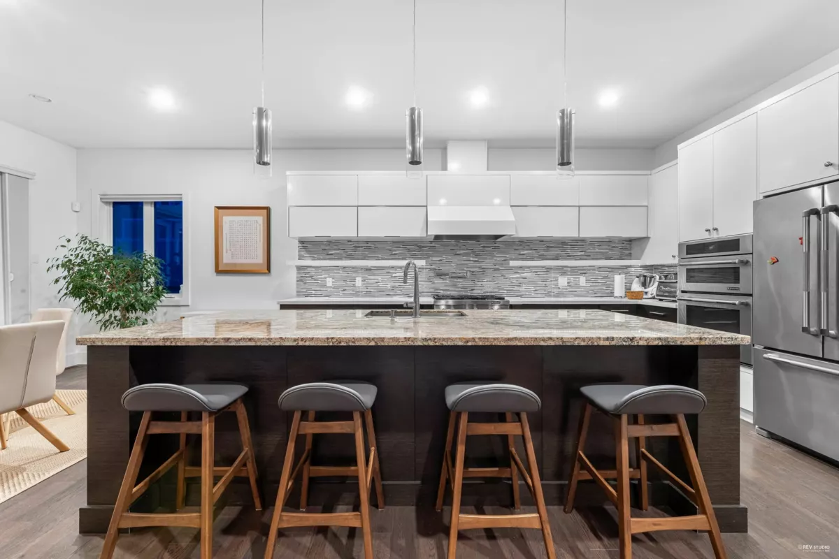 VIEW, LOCATION & QUALITY! Built in 2014, this stunning contemporary home showcases breathtaking southwest views of the ocean, Downtown Vancouver, Point Grey & Vancouver Island. The main floor features a spacious open-concept layout with 10ft ceilings, a designer kitchen with high-end appliances, & Eclipse doors that open to a large sun-drenched deck with built-in BBQ—part of over 900 sqft of deck & balcony space, ideal for seamless indoor-outdoor living & entertaining. Upstairs offers 3 generous bedrooms, each with its own ensuite & beautifully appointed finishes. The lower level includes a media room, 4th bedroom, full bathroom, & laundry, plus a self-contained 1-bedroom suite with full kitchen—perfect for in-laws, guests, or added income. Open house on Sun 2-4pm, Jan 18th.