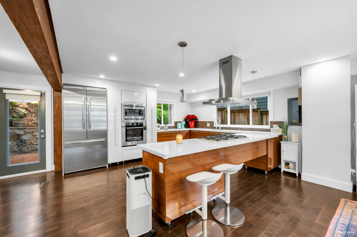 Welcome to this beautifully updated home in the heart of the Upper Delbrook community. The upper level offers lovely ocean & city views from a spacious sundeck, perfect for relaxing/entertaining. Over 3,400sqft of fully above-ground living space, the flexible floor plan allows each level to function independently, making it ideal for extended families, guests, or a mortgage-helper suite. Thoughtfully renovated w/ quality finishes including Bosch appliances, African Birch hardwood floors & Toto wall-hung toilets. 2024–2025 improvements include a new boiler & A/C, rebuilt front & back decks, upgraded drainage & updated electrical. Located on a quiet street close to schools, parks, and nature, this home offers comfort, space & versatility.