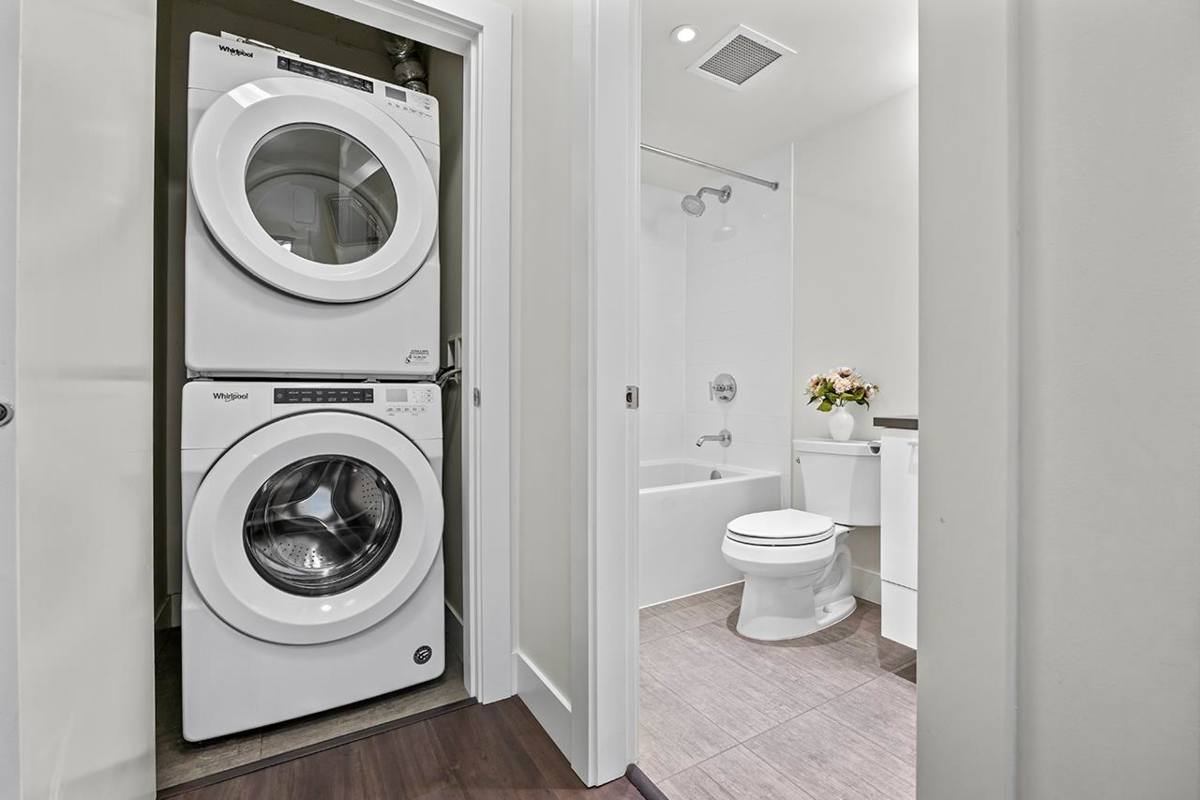 Welcome to The Columbia by Wesgroup—a beautifully, quiet, wellmaintained home offering 2 bedrooms and 2 bathrooms with a highly functional layout. The modern kitchen is equipped with stainless steel appliances, quartz countertops, a gas range, and ample cabinetry, making it perfect for everyday cooking and entertaining. Residents have exclusive access to Club Central, a worldclass 10,000+ sq. ft. indoor amenity centre featuring a full fitness facility, yoga studio, squash court, party room, treatment room, dance studio, and meeting rooms. Conveniently located close to everything New Westminster has to offer—the Brewery District, great restaurants, shops, and SkyTrain just steps away.