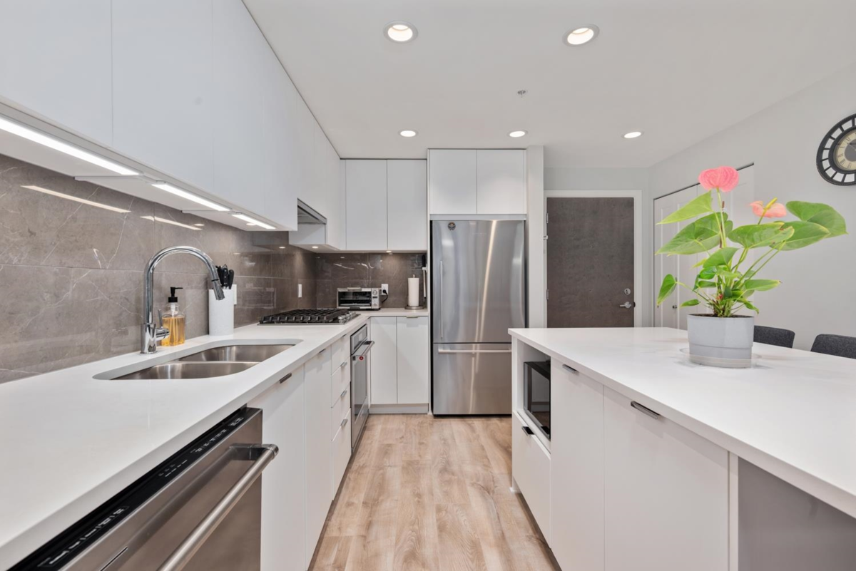 BEST PRICE IN THE AREA!!! CARDINAL by AWARD WINNING POLYGON- like brand NEW 2 BEDROOM 2 FULL BHR with luxury lobby, brick exterior details, oversized windows. EAST exposures home with tons of natural light, premium open chef's kitchen with a BIG ISLAND 6’x3’ and a Gas cooktop; all stone countertops, primary bedroom with WALK-IN CLOSET, spa inspired ensuite with dual sinks+ shower. Custom lighting/shelving/drawers/curtains. Enjoy top amenities, including an air-conditioned fitness center, a guest lounge for gathering, yard with playground. Steps away from Lougheed MALL, across Cottonwood PARK, tennis courts, YMCA & Burquitlam Skytrain, SFU, BURNABY MOUNTAIN TRAILS. 1 Premium parking stall with fully installed EV charger, bike storage+ locker 6’4 X 6 included. Open House Sun Feb 8 (2-4PM)