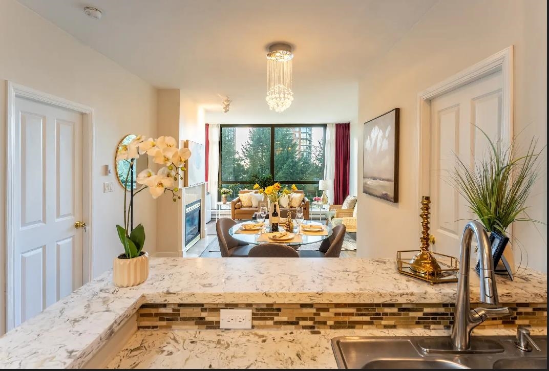 An absolutely beautiful suite in Burnaby! Perfect for self-live or investment! Very spacious 2 bedroom with quiet & peaceful greenbelt view. A well sought-after lower level suite in the area. Lots of privacy w/separate bedroom. Lots of upgrades:Stone kitchen & bathroom counter top, backsplash, new fridge & dishwasher, washer & dryer, new flooring, new vanities and toilets. Quiet & peaceful environment! Next to the greenbelt w/fresh air. Plenty of light, large floor to ceiling window, functional layout w/open kitchen & spacious dining & living room. Gas fireplace saves your energy bill. Comes w/1 parking & 1 locker. A few mins walk to Edmonds Skytrain, Kims Market, trails, parks, Taylor Park Elementary, Daycare Centre, only few min drive to Metrotown & HighGate.OH Jan 17 & 18 2pm -4 pm