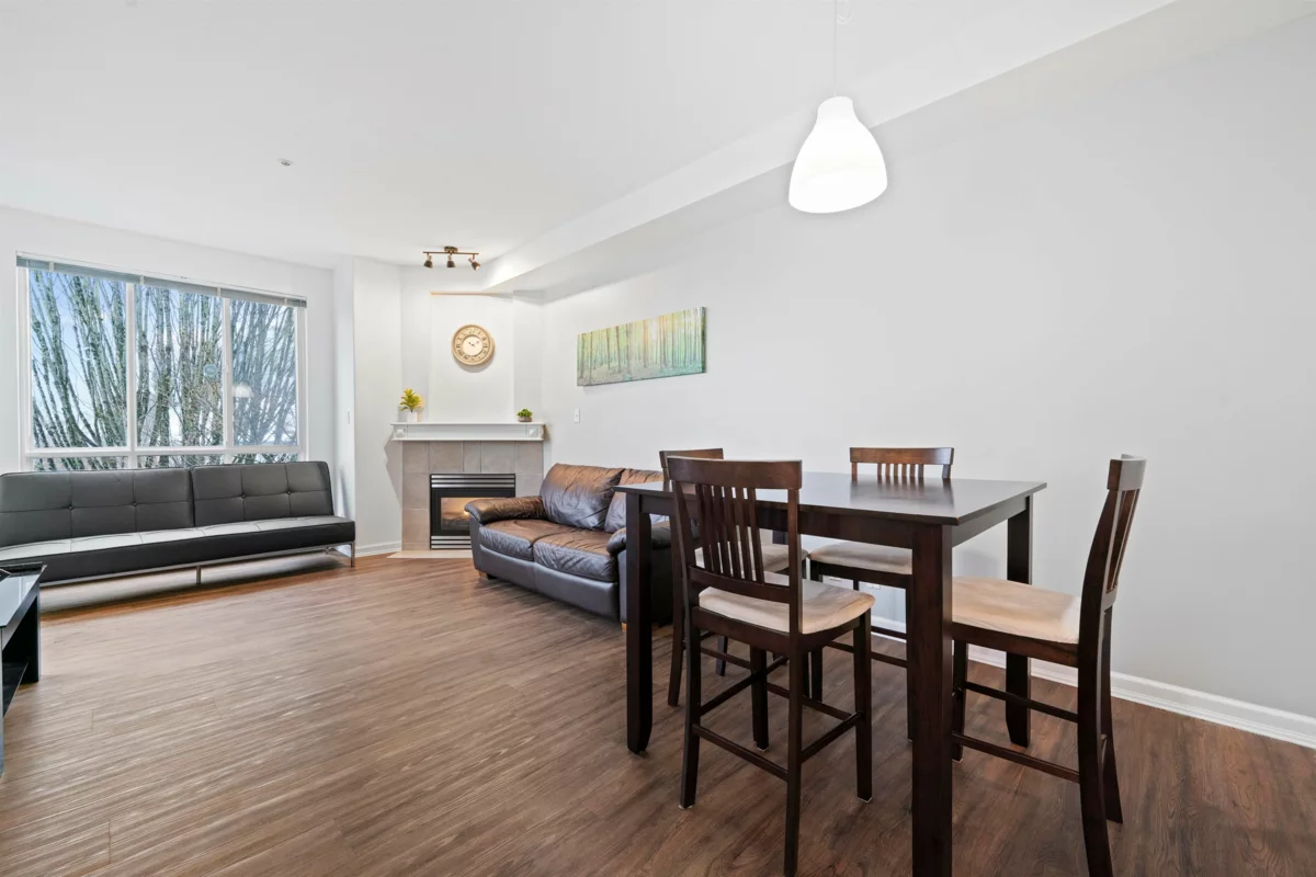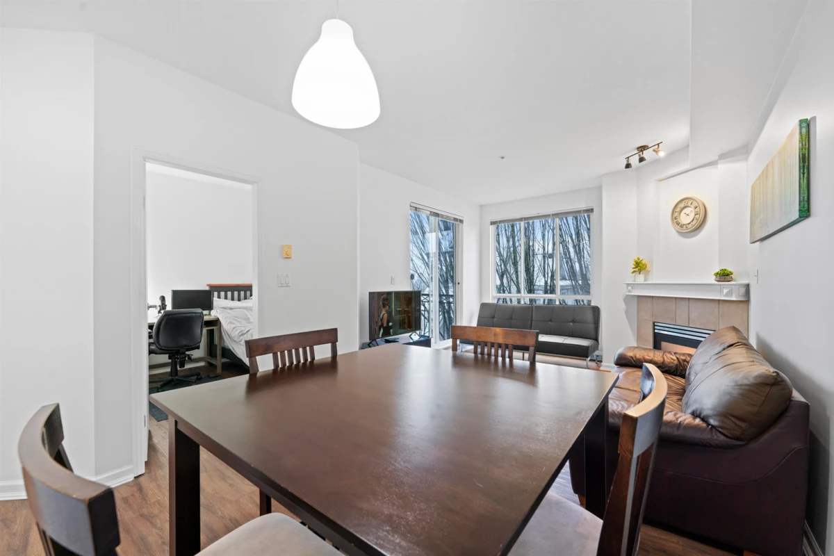 Welcome to Rivergate, a bright and spacious 2-bedroom, 1-bath condo with stunning southwest-facing views of the river. This charming home features distinct living and dining areas, highlighted by a cozy gas fireplace, perfect for relaxing evenings. Enjoy the perks of living in the sought-after Waterfront River District neighborhood, with easy access to golf courses, parks, scenic bike and walking trails, plus quick connections to YVR, Richmond, Burnaby, and Downtown Vancouver. The pet-friendly building allows two pets with no size restrictions, making it an ideal riverside retreat for both you and your pets.