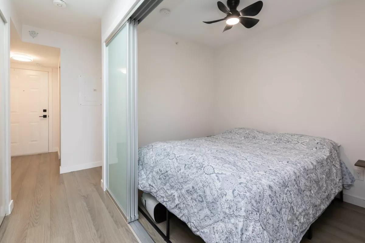 TOP FLOOR Bright 1 Bedroom with a Mountain VIEW! Stainless steel appliances with brand-new updated microwave/hood fan, Corian countertop, ample natural light, a large covered balcony, 1 storage locker & a parking space. A spacious bedroom with built-in side tables and an updated ceiling fan. Low strata fees cover hot water, and management, pets and rentals are welcome! Close to Surrey Central, SFU, KPU, the library, future UBC campus, various restaurants, and a future SkyTrain station. Enjoy the use of an indoor lounge with a ping pong table, a secure bike locker room, and an outdoor basketball court/tennis court.