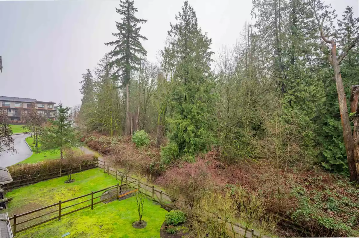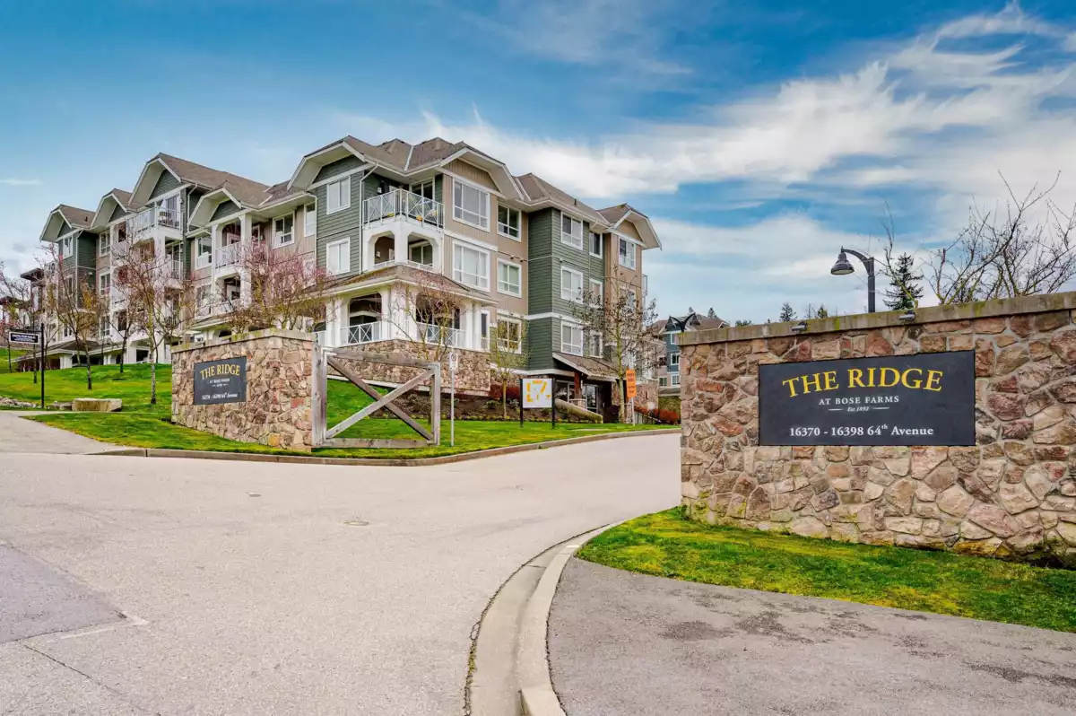 Wake up to forest views at The Ridge at Bose Farms! This private, south facing 846 sqft, 2 bed, 2 bath condo offers a bright, open-concept layout designed for both comfort and style. The modern kitchen features stainless steel appliances, quartz countertops, and an oversized island. Opposing bedrooms provide maximum privacy. Enjoy the convenience of in-suite laundry and unwind on your spacious, fully covered balcony overlooking the serene Bose Forest Park. Resort style living with great amenities, heritage barn clubhouse with valley views, garden plots, playground, gym, yoga studio, craft room, library, theatre and more. Located close to parks, transportation, schools, easy access to Hwy 10, Hwy 15 and Fraser Hwy.