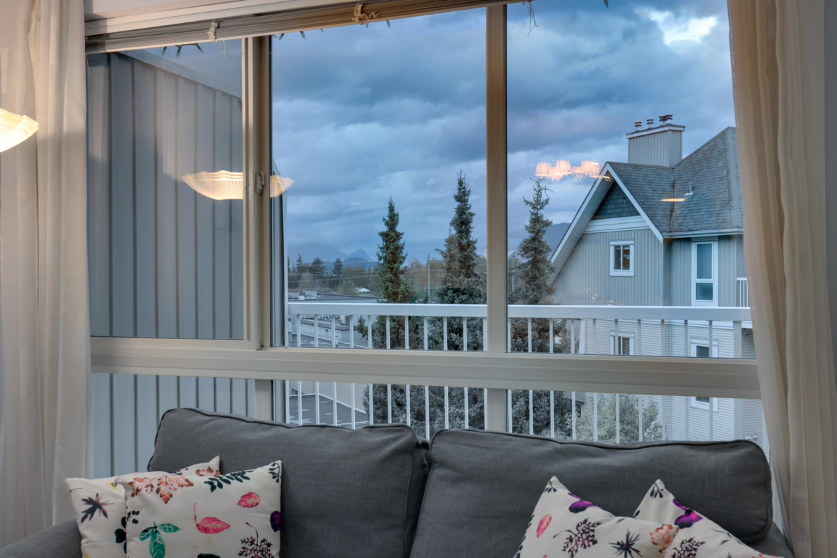 Top-floor living with stunning mountain views! This bright and spacious 1,068 sq/ft home features 2 bedrooms plus a den, 2 full bathrooms and a generous kitchen pantry. The open layout offers plenty of natural light, newer laminate flooring and smart use of space with ample storage throughout. Enjoy your morning coffee on the large deck or at the Starbucks next door while your EV charges at the new station. Quiet yet ideally located beside Save-On-Foods, Shoppers Drug Mart and more. Well-managed building on the north side of the tracks—no train delays. Includes parking, large storage locker and pet-friendly options. Come see why this one stands out!